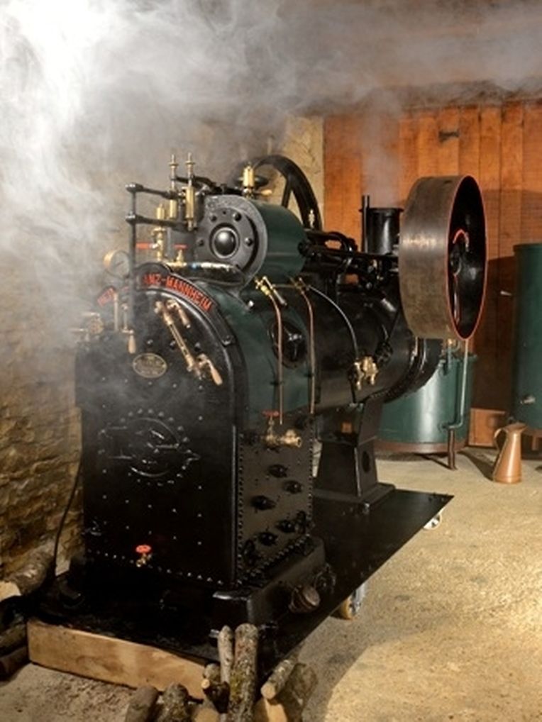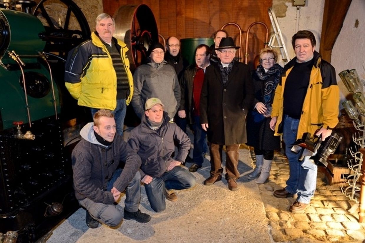 E Mëttwoch den 11. Dezember war et endlech esou wait. Di formidabel restauréiert Heinrich-Lanz-Dampmaschinn vun 1899 huet hier Plaz am Brennereimüsee found a gouf feierlech agewait. Ronn 2000 Stonnen hu Fraiwelleger vun de "Frënn vum Brennereimüsee" dru geschafft fir se pikobello an d'Rei ze setzen. Eng al Scheier um Site vum Müsee gouf restauréiert an aménagéiert fir se do ënner Daach ze bréngen.