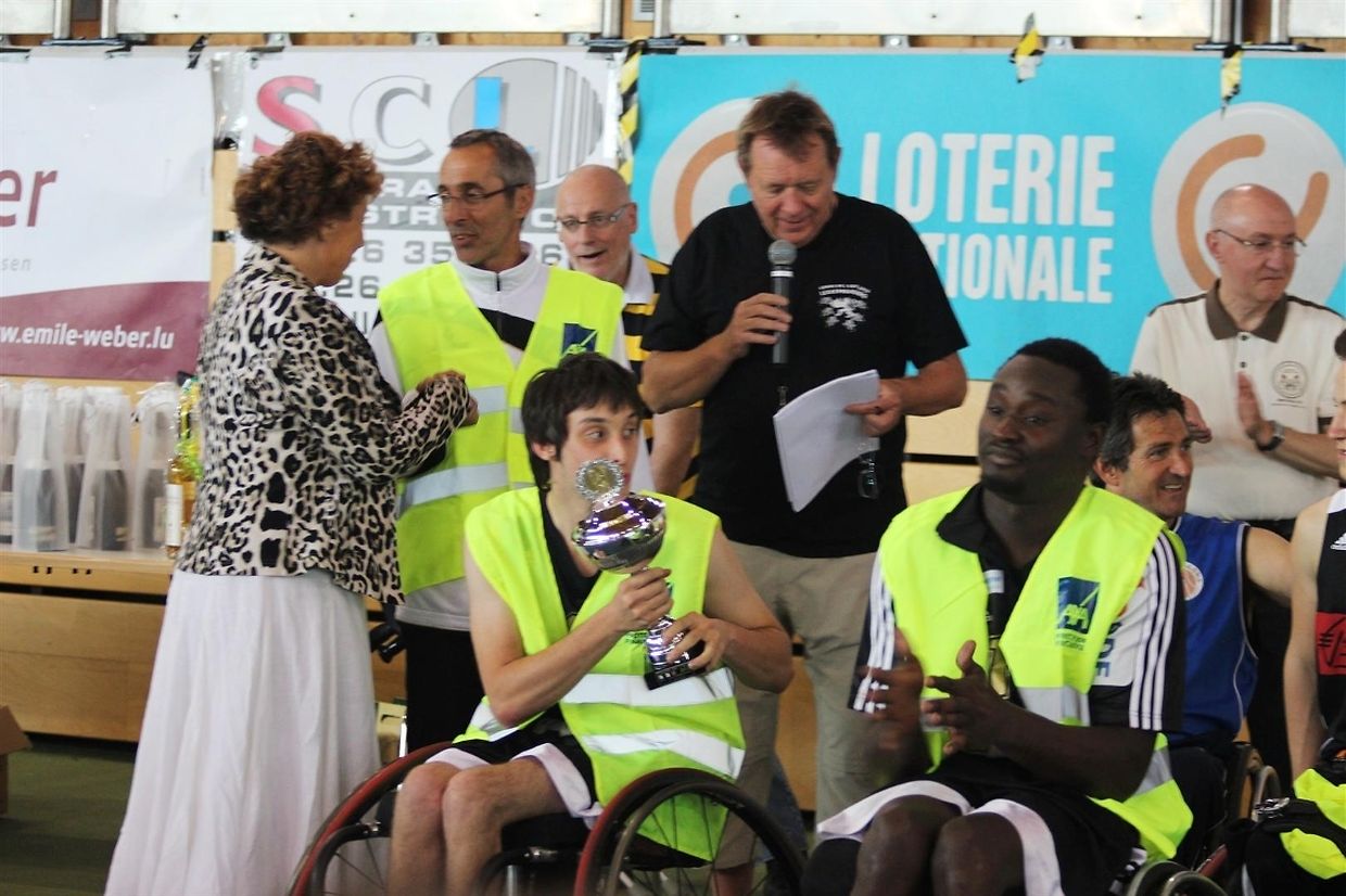 Les 22 et 23 juin, se déroulait à l’espace sportif de la Coque, la 16ème édition de la Coupe de l’Est. Ce tournoi rassemblait 17 équipes en Basket en fauteuil roulant, soit 140 participants, venus des 4 coins de la grande, … voire parfois très grande région ! Ainsi les 2 équipes locales, Lux Rollers et Lux Rollers 2, accueillaient des équipes essentiellement originaires de France : Thionville, Dijon, Jarny, Troyes, Besançon, Chalon, St Avold, Auxerre, Belfort, Astres, Illkirch. Les 2 villes de Strasbourg et Vandœuvre étaient représentées par 2 équipes !