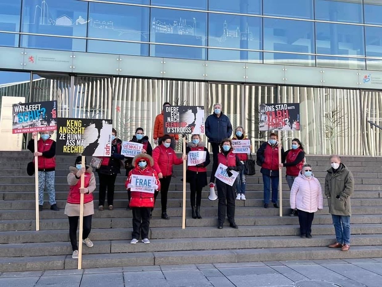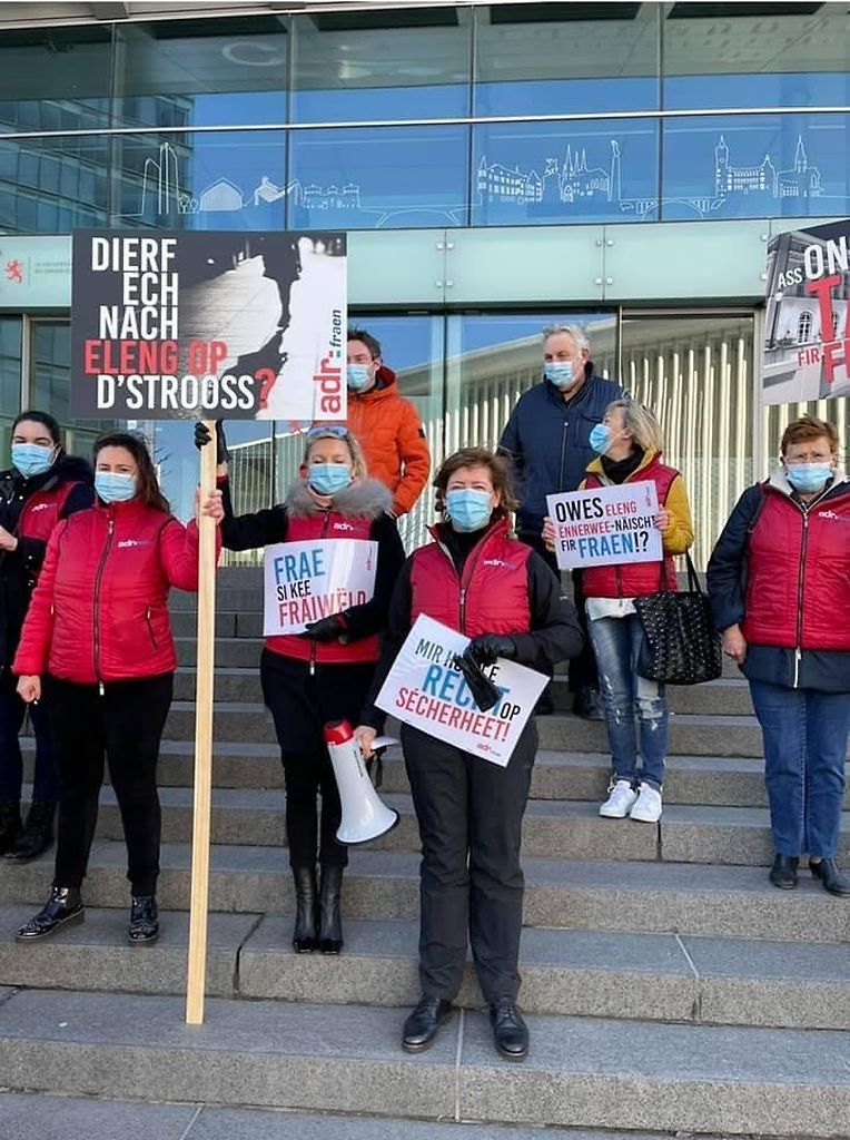 Luxembourg - Kirchberg Protestpiquet vun den ADR Fraen den 06.03.2021 beim Policeministere Adr Beetebuerg 7 Picture Gallery Please scroll down,to see more pictures. Published on Monday, 29 March, 2021 at 18:41 Kirchberg-Plateau, Luxemburg Protestpiquet vun den ADR Frae virum Policeministere fir méi Sécherheet zu Lëtzebuerg am Kader vum Internationale Fraendag. Report inappropriate content More news by Adr Beetebuerg > Flotte Floumaart zu Beetebuerg 30/04/22 Bettembourg Floumaart zu Beetebuerg 09.10.2021 30/09/21 Bettembourg ADR Fraen am Asaz bei der Grousser Botz zu Beetebuerg den 27.03.2021 29/03/21 Bettembourg ADRBeetebuerg & ADR Fraen bei der Grousser Botz zu Beetebuerg den 27.03.2021 29/03/21 Bettembourg