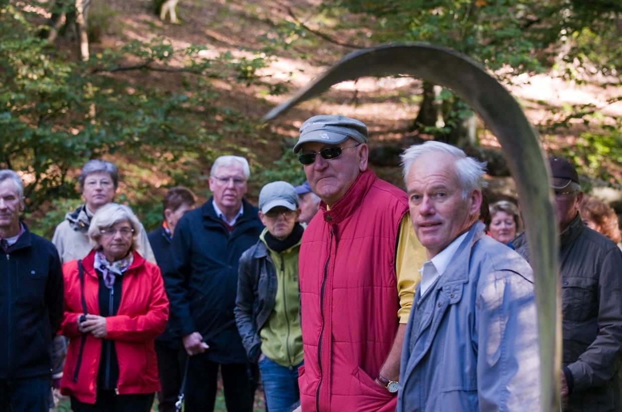 Am Eingang des „Häreboesch“ begegnete die imposante Wandergruppe die Erinnerungsstätte einer Absturzstelle eines britischen Fliegers aus dem 2 Weltkrieg.