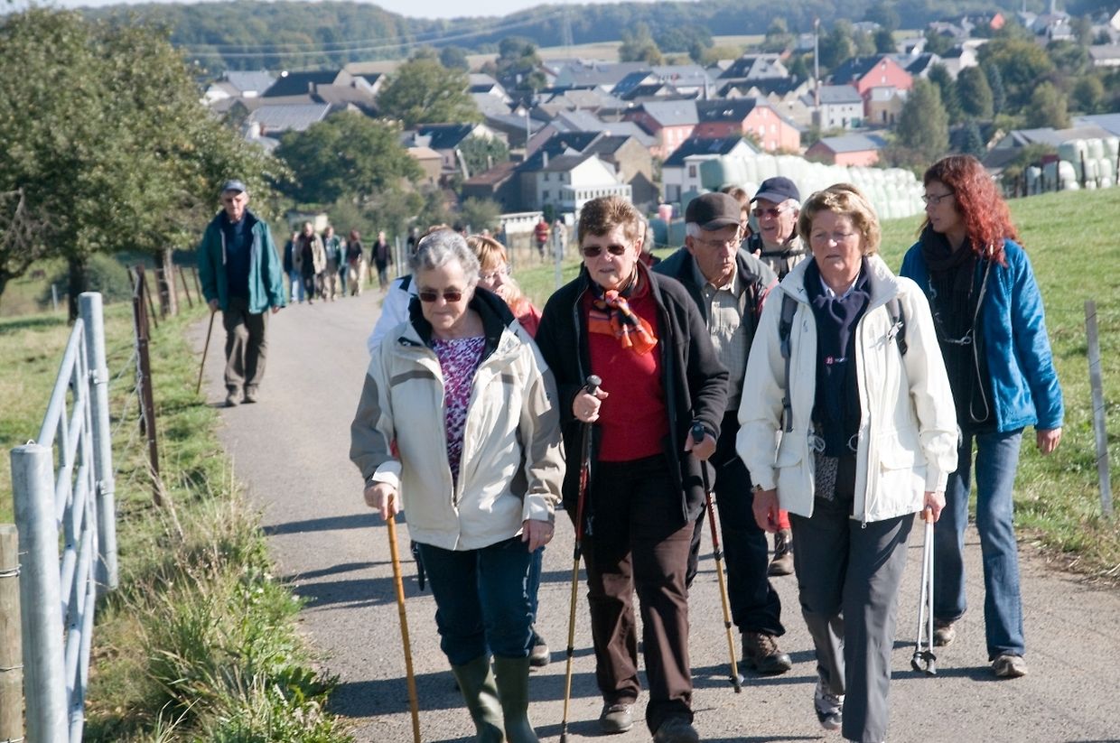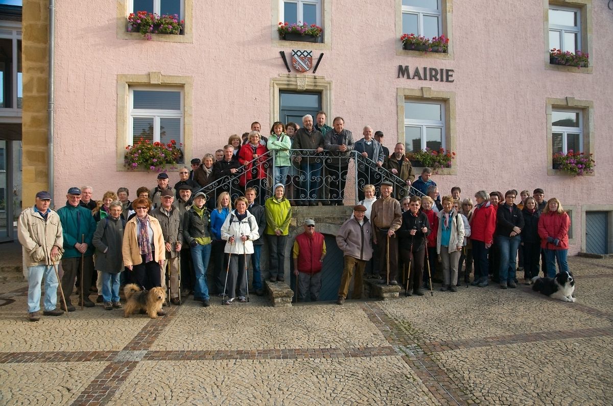 Etwa 80 Wanderfreunde folgten dieser Einladung und fanden sich zu der Jubiläumstour beim „Greiveschlass„ in Koerich ein.