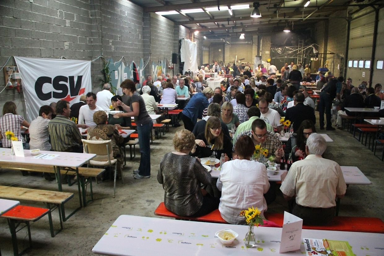 E Sonndeg, den 11. September 2011 hate mir eist traditionellt CSV-Hunnefest zu Kéinzig. De Jang Kolbusch huet déi vill Gäscht aus eiser an den Nopeschgemengen, an dorënner eng ganz Rëtsch Prominenz, begréisst, déi trotz dem Schloreen de Wee an dem Schani seng Scheier fonnt haten.