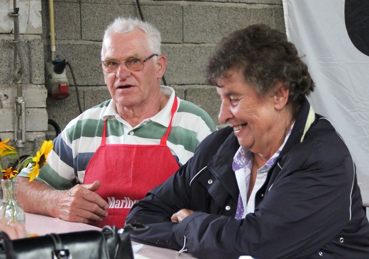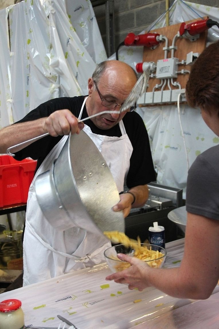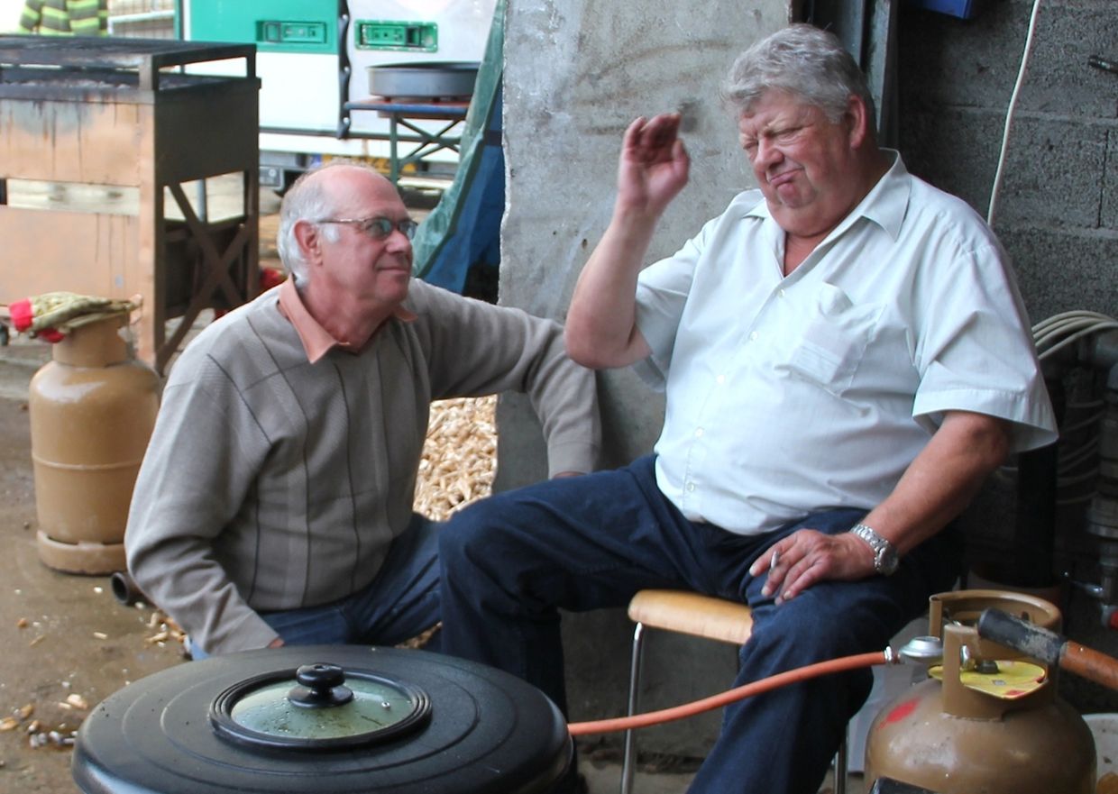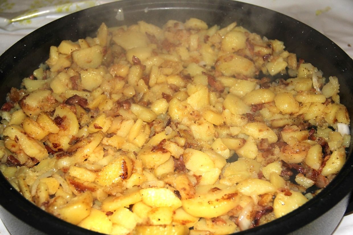 Nom 1. Schäffe senger Ried kruten dunn eis hongreg (an duuschtereg) Gäscht Frällen, Entrecôten, Koteletten, allerhand Wipp an duerno e gudden Eisekuch zervéiert. Fir owes hate mir, wéi ëmmer, eng extra Schlabäizchen op der Kaart: Féngiger Spigeleeër mat gebrode Féngiger Gromperen. D'Leit lecken sech elo nach d'Fangeren drun.