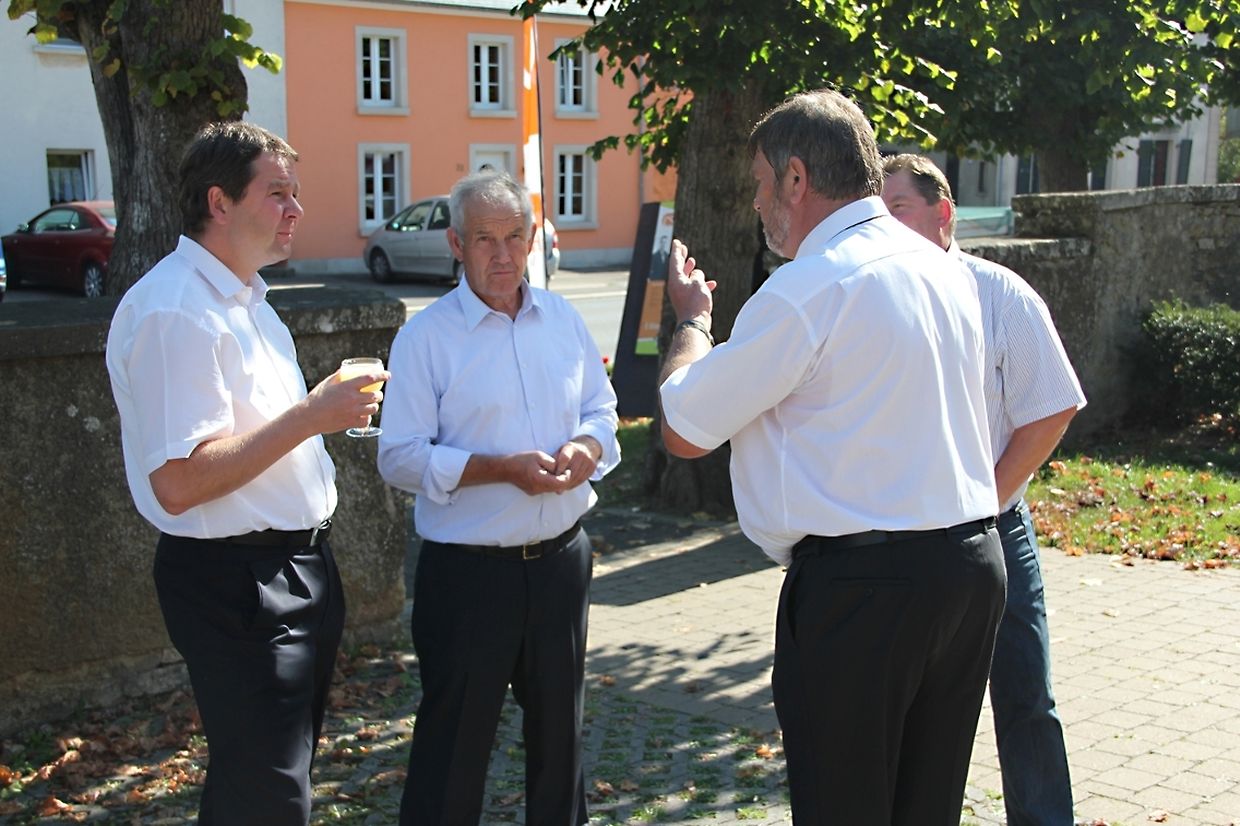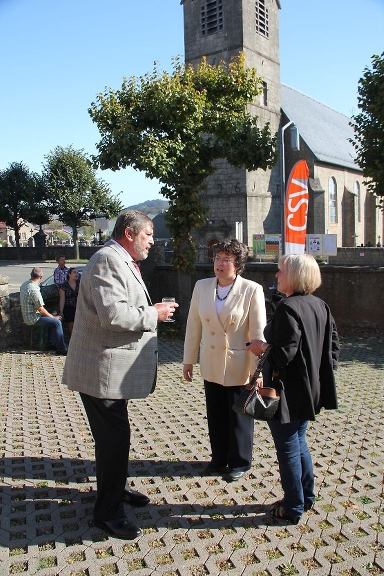 Kiermessonndeg no der Mass – an dëst Joer no der Zeremoni um Nationale Commemoratiounsdag – huet d'CSV Kéinzig/Féngig den Awunner aus der Gemeng e gudde Pättche Fiederwäissen offréiert. Selbstverständlech sinn och déi Käerjenger Parteifrënn um Rendez-vous gewiescht. Mat virop dem Député-maire Michel Wolter, deen op en Neits zum Ausdrock bruecht huet, wéi staark hien ëm d'Wuel vun de Kéinziger a Féngiger Bierger besuergt ass. Haaptgespréichsthema waren um Kiermesapero natierlech d'Gemengewahle vum nächste Sonndeg. Jiddereen, dorënner och Virwëtzeger aus anere Parteien, krute vun den CSV-Kandidaten op all Fro eng kloer Äntwert.