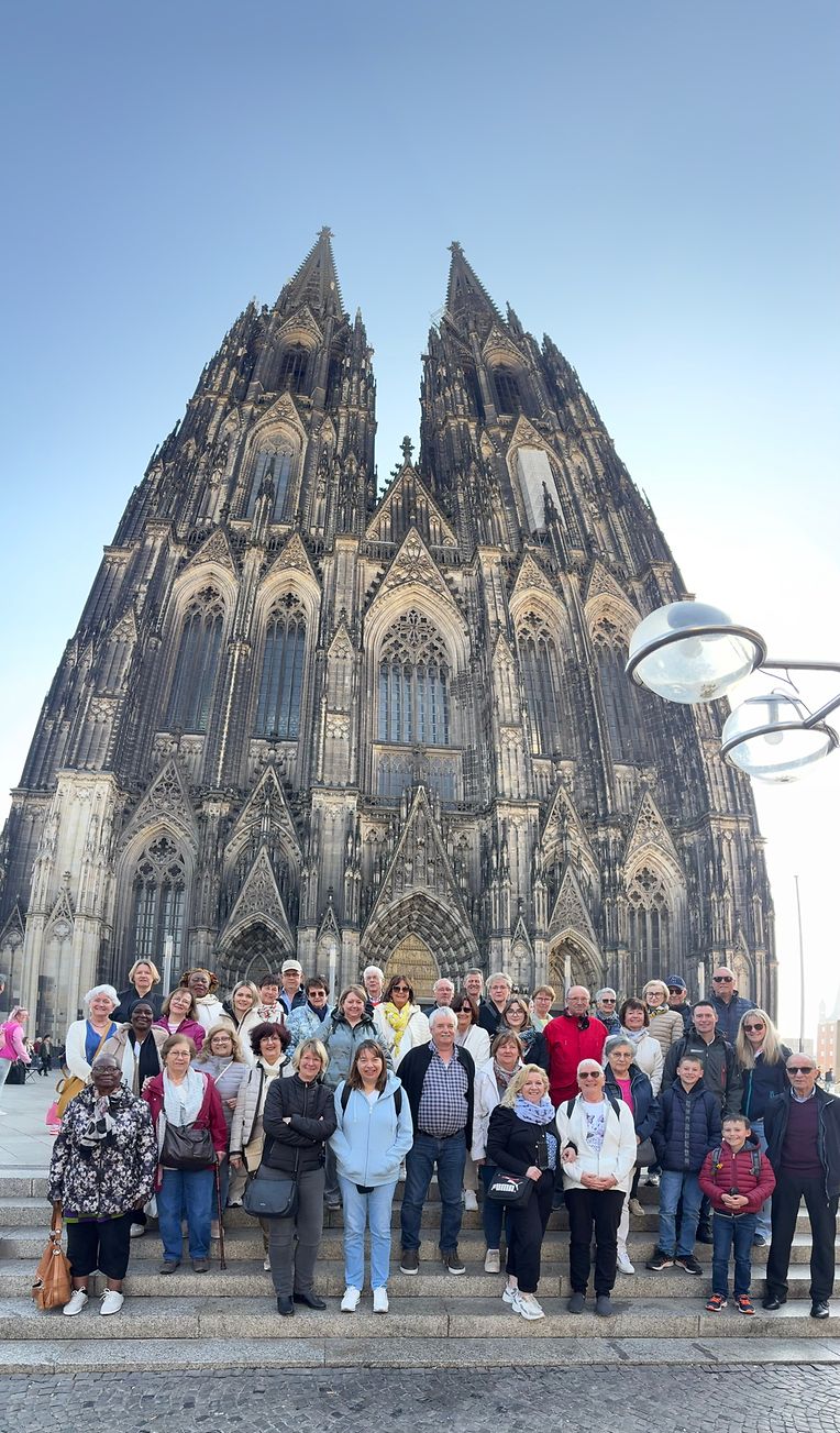 Der Höhepunkt des Tages war natürlich der Besuch des weltberühmten Kölner Doms. Vor der imposanten Westfassade, die als größte Kirchenfassade der Welt gilt, wurde ein gemeinsames Gruppenfoto gemacht. Der Dom, dessen Türme 157 Meter in den Himmel ragen, war vier Jahre lang das höchste Gebäude der Welt - und zieht auch heute noch täglich bis zu 20.000 Besucher an. Beeindruckt zeigten sich die Gäste aus der Gemeinde Lenningen vom Inneren des Doms, insbesondere vom prächtigen Dreikönigsschrein, der die Reliquien der Heiligen Drei Könige beherbergt. Romain Blaeser wusste zu berichten: „Als Erzbischof Rainald von Dassel 1164 die Gebeine aus Mailand nach Köln brachte, machte er die Stadt zu einem der bedeutendsten Wallfahrtsorte Europas.“ Mutige erklommen die 533 Stufen bis zur Domspitze - und wurden mit einem atemberaubenden Blick über Köln belohnt. Und wie sagt ein altes kölsches Sprichwort: „Wenn der Dom fertig ist, geht die Welt unter“. Denn in der Tat: Das gigantische Bauwerk ist bis heute eine „ewige Baustelle“. Wer Köln wirklich kennen lernen will, muss sich Zeit nehmen - aber dann offenbart sich eine lebendige, weltoffene Stadt mit viel Herz und Charakter. Der Ausflug war eine gelungene Mischung aus Geschichte, Genuss und Geselligkeit - ein Tag voller Eindrücke, an den man sich gerne erinnert.