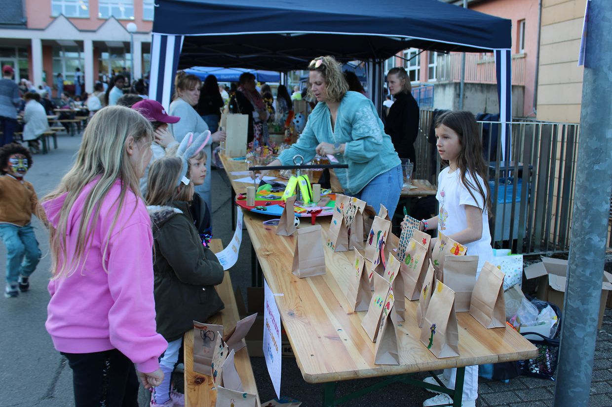 Organisiert von Schülern und dem Schulpersonal bot der diesjährige „Fréijoersmaart“ eine wunderbare Gelegenheit zum gemütlichen Beisammensein. Der Markt bot ein abwechslungsreiches Programm für Besucher jeden Alters. Von herzhaften Grillspezialitäten über süße Köstlichkeiten wie Crêpes, Kaffee und Kuchen bis hin zu einem Gläschen Crémant und einem kühlen Bier oder anderen Erfrischungsgetränken war für jeden Geschmack etwas dabei. Elisabeth Blaeser-Blum betont am Getränkestand: „Das sind alles sehr liebe ehemalige Kolleginnen.“ Auch Liebhaber von Handwerkskunst und floralen Dekorationen kamen auf ihre Kosten: An liebevoll gestalteten Ständen wurden handgefertigte Bastelarbeiten und frische Blumen zum Verkauf angeboten. Innerhalb kürzester Zeit fanden viele der kunstvollen Werke begeisterte Abnehmer – ein deutliches Zeichen für die große Begeisterung der Besucherinnen und Besucher.