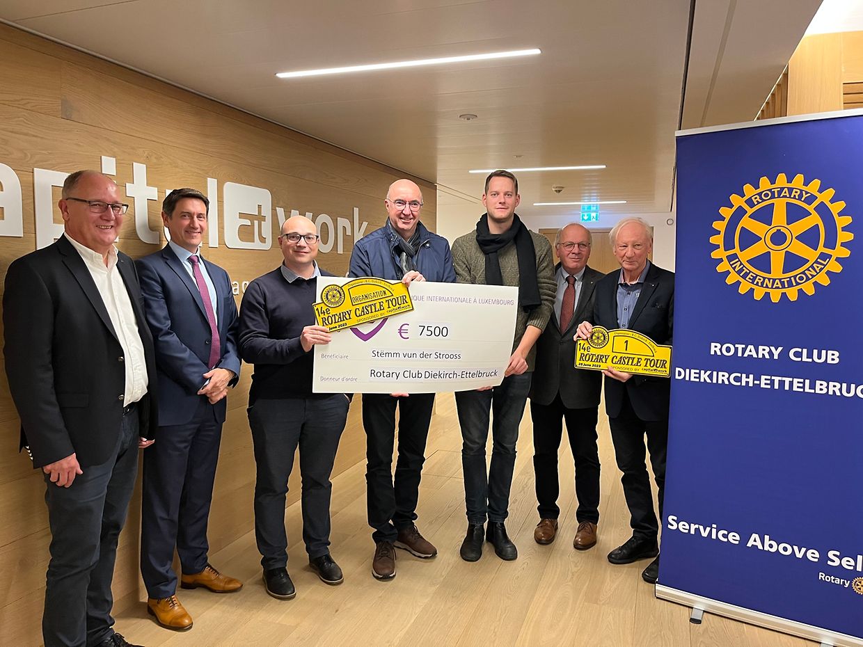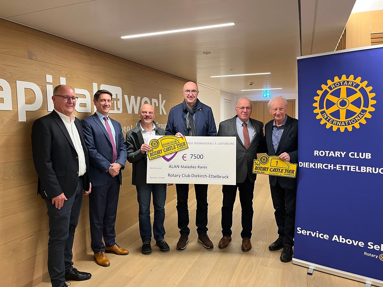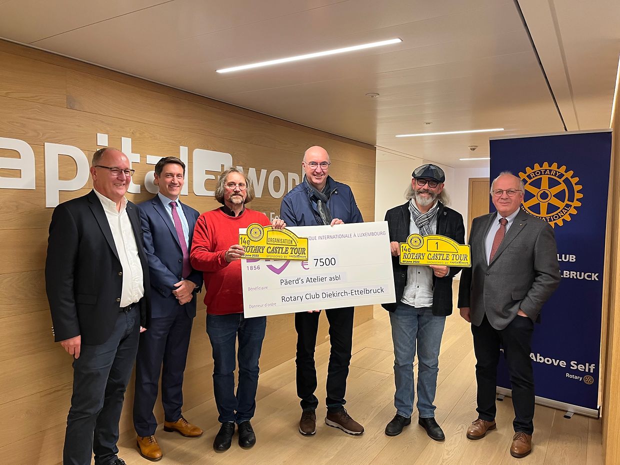 De Rotary Club Dikrech-Ettelbréck ënnerstëtzt  Projeten am Domaine vun der Jugend, der Educatioun, dem Handicap an dem Sozialen zu Lëtzebuerg. Sou huet de Club  Donen vun jeeweils 7500 EUR aus dem Benefice vum 14ten Rotary Castle Tour un dräi Associatiounen aus dësem Domaine de 20ten November am Sëtz vun CapitalatWork iwwerreecht. Dest waren de  Päerdsatelier- Liewenshaff, d'ALAN-Maladies Rares an d'Stëmm vun der Strooss.