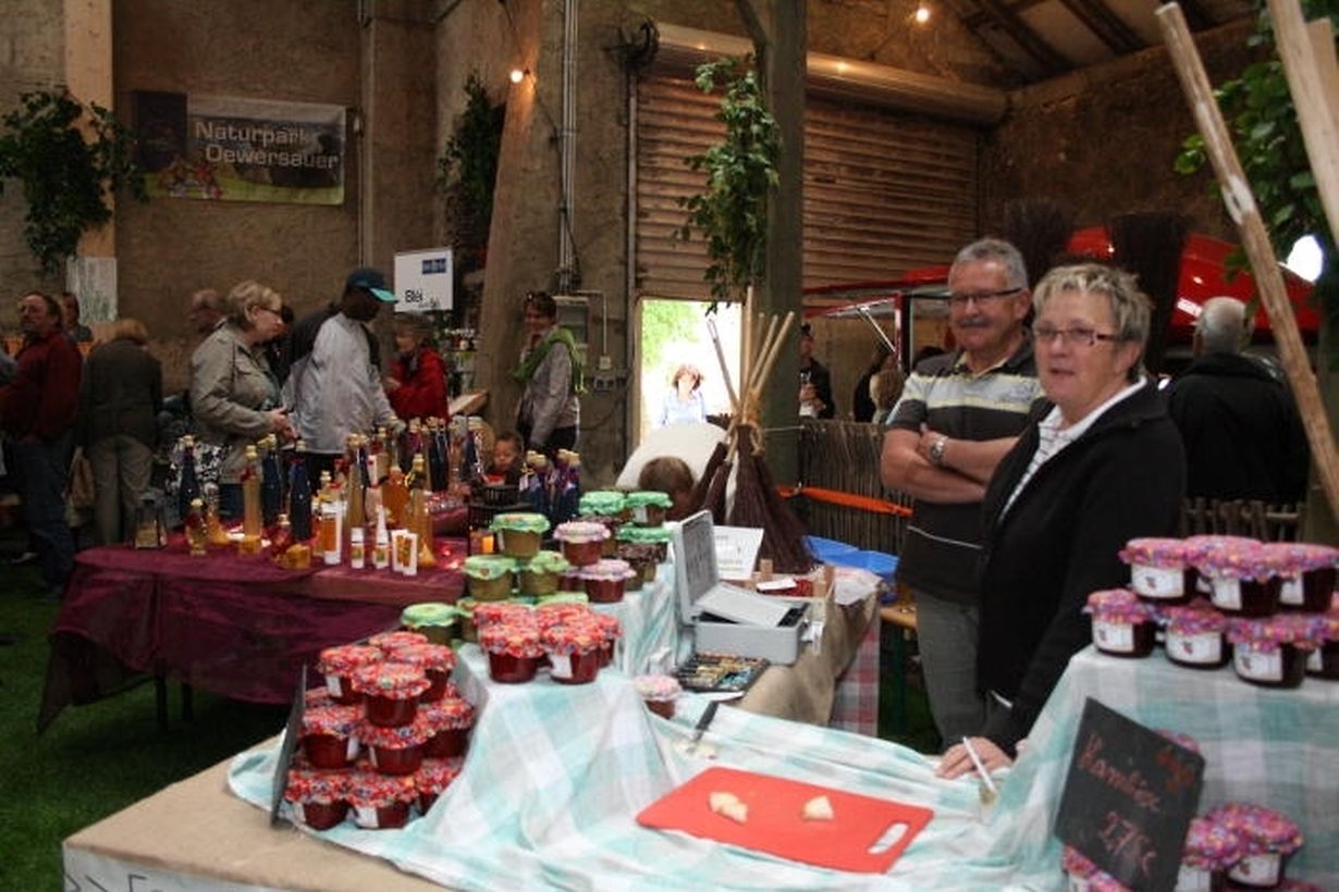 Vorrangig wurden dabei natürlich wieder regionale und handgefertigte Produkte angeboten, von Seife, „Loumellen“, Besen, Gewürzen, Essig, Ziegenkäse und Fleisch über Honig, Liköre, Wein, hausgemachte Marmelade, Karten und Aquarelle bis hin zu Tee, Blumen, Keramik, Brot, Baumkuchen, Waffeln, Bier, Decken oder Schmuck. Reißenden Absatz fanden auch die kalten Platten mit Produkten „vum Séi“ sowie die „Gromperekichelcher“ und Wurstspezialitäten.