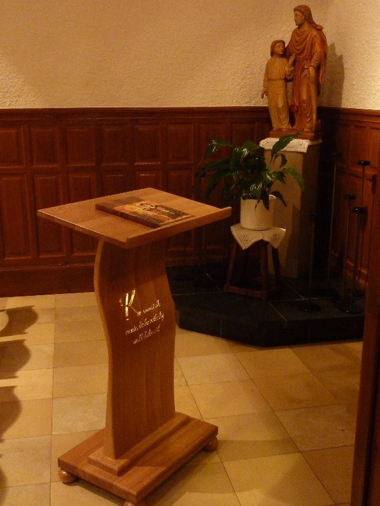 So nannte es Dechant Jos Roemen anlässlich des Bettages in Lieler. Ein neues Ambo, geschaffen vom bestbekannten Künstler Nico Schenck, steht ab letzten Sonntag in der Pfarrkirche von Lieler. Die Kirchenfabrik gab es letzten Sommer in Auftrag. Menschen sollen ihre Sorgen und Nöte aufschreiben, die dann während dem Gottesdienst in die Fürbitten mit einbezogen werden. So soll das Leid des einzelnen von der ganzen Gemeinde mit vor Gott getragen werden gemäss dem Motto auf dem Sockel des Ambo: Kommet alle zu mir, die ihr mühselig und beladen seid.