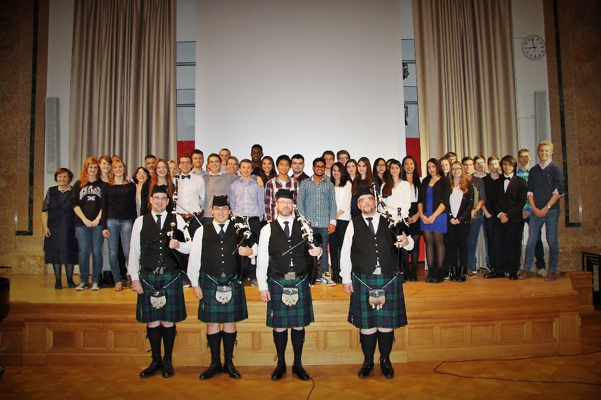 Ungewohnte Dudelsackklänge eröffneten am Donnerstag, dem 8. Oktober einen spannenden Abend im Lycée Robert-Schuman: die Schüler der 1re BC1 und 1re C2 präsentierten die Erkenntnisse, die sie aus einem Projekt und einer anschließenden Klassenreise nach Schottland im letzten Schuljahr gewonnen hatten. Im Mittelpunkt standen naturwissenschaftliche und mathematische Themen. So besuchten die Schüler auf ihrer Reise ein Schiffshebewerk, die Falkirk Wheel, ein Pumpspeicherwerk in Cruachan, eine Whisky-Brennerei in Oban, die Philips-Werke in Hamilton sowie ein Fliegermuseum in East Fortune. Besonders beeindruckend war der Besuch im Sea Bird Centre North Berwick, bei dem man nicht nur den brütenden Basstölpeln und Papageientauchern außergewöhnlich nah kam, sondern auch eine sehr spannende und feuchte Bootstour erleben konnte. Die beiden Städte Glasgow und Edinburgh lagen auf der Reiseroute und hatten neben dem fesselnden Glasgow Science Centre auch sehr viel Kulturelles und Historisches zu bieten. Die gesamte Reise war im Vorfeld in praktischen Workshops vorbereitet worden, so dass die Schüler vielfach selbst erprobt hatten, was sie in Schottland sehen konnten. Da diese Form der wissenschaftlichen Erkundung seit einigen Jahren einen festen Bestandteil im Curriculum der 2e B und C Schüler hat, waren auch die diesjährigen 2e Schüler bei dem Abend dabei und haben nach der Vorstellung für das leibliche Wohl gesorgt. Der Erlös des Abends ging integral in ihre Reisekasse. Ziel des diesjährigen „Voyage scientifique“ sind Toulouse, Montpellier und Bordeaux.