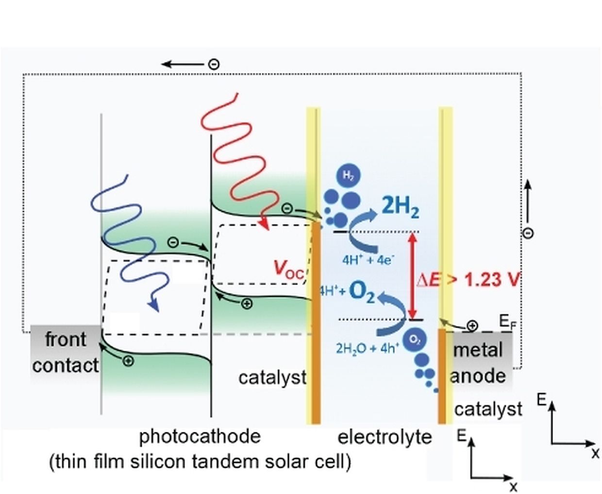 C'est un composant électronique qui, exposé à la lumière (photon), décompose l'eau en oxygène et hydrogène. On peut ensuite utiliser cet hydrogène dans des piles à combustible ou des moteurs à hydrogène. Une telle cellule photoélectrochimique est formée d'une électrode photosensible immergée dans un électrolyte ou dans de l'eau.
