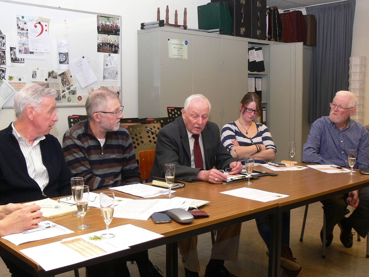 No enger Gedenkminutt fir de Benni Schmit, deen ugaangs Februar gestuerwen ass, gouf de Bilan vun engem aarbechtsräiche Joer gezunn: 12 Concert-ën, d’Sprangprëssëssioun zu Iechternach, 39 Prouwen. De Comité war 8 Mol zesummen.