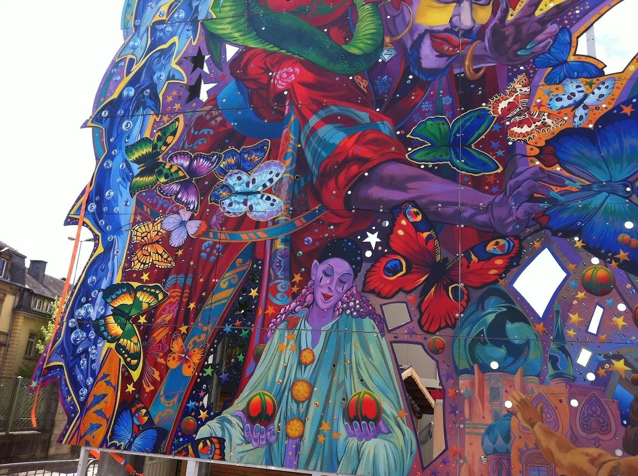 2007 wurde dieses 18 mal 18 Meter großes Portal vom Künstler Hendrik Van den Kerchove, in Zusammenarbeit mit Tiziana Raffaelli, Michèle Tontelinger, Edgar Saillen, Guillaume Weis, Lydia Cettiga, Audrey Dhyvert, Natacha Raffaelli und Serge Siweck erstellt . Das ausgewählte Motiv ist von "1001Nacht" inspiriert, aber es gibt ebenfalls japanische und chinesische Einflüsse. Die Natur ist ebenfalls reichlich präsent, Schmetterlinge, Paradiesvögel, usw. Und wer sich das Werk näher anschaut, kann sogar eine eher kritische Message rauslesen...