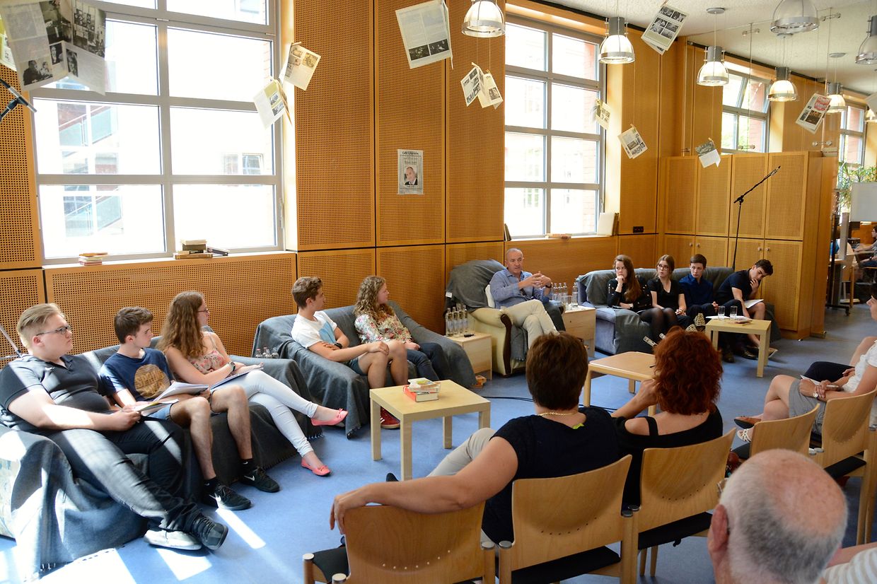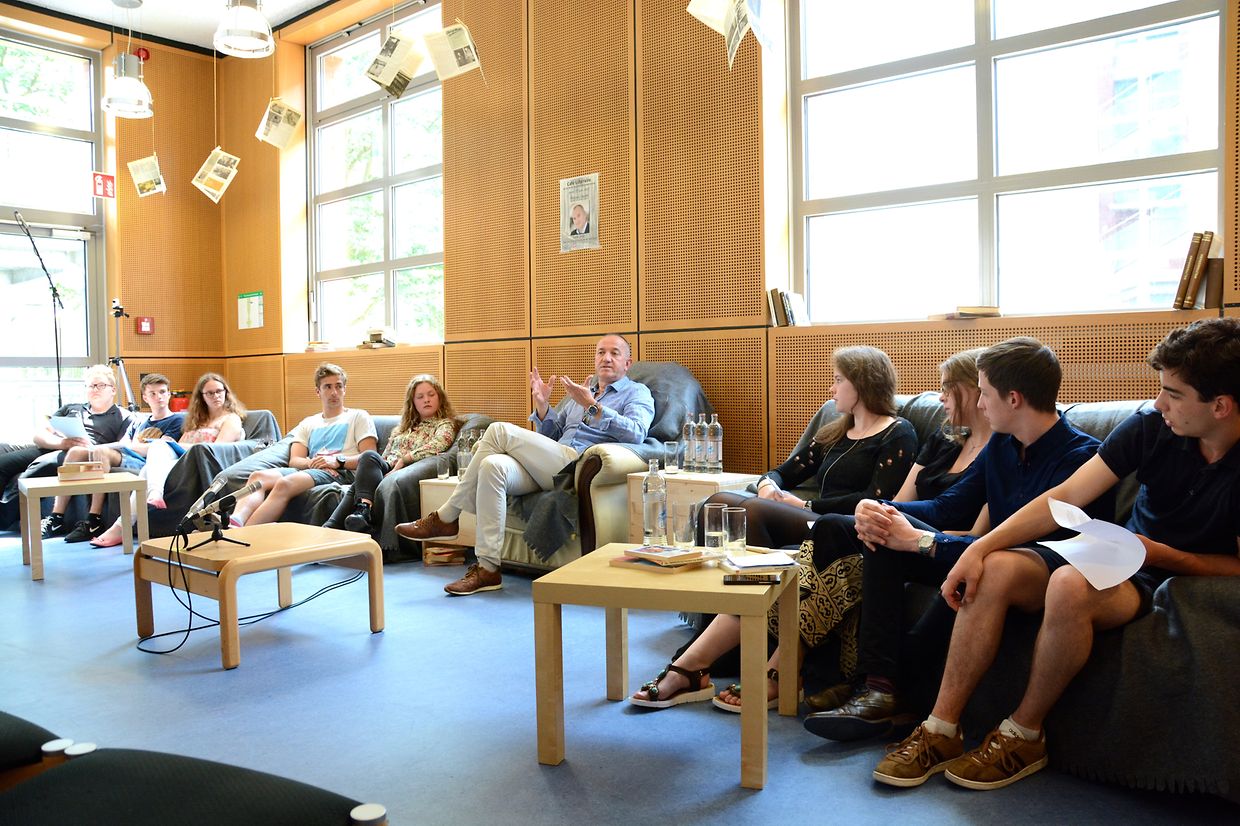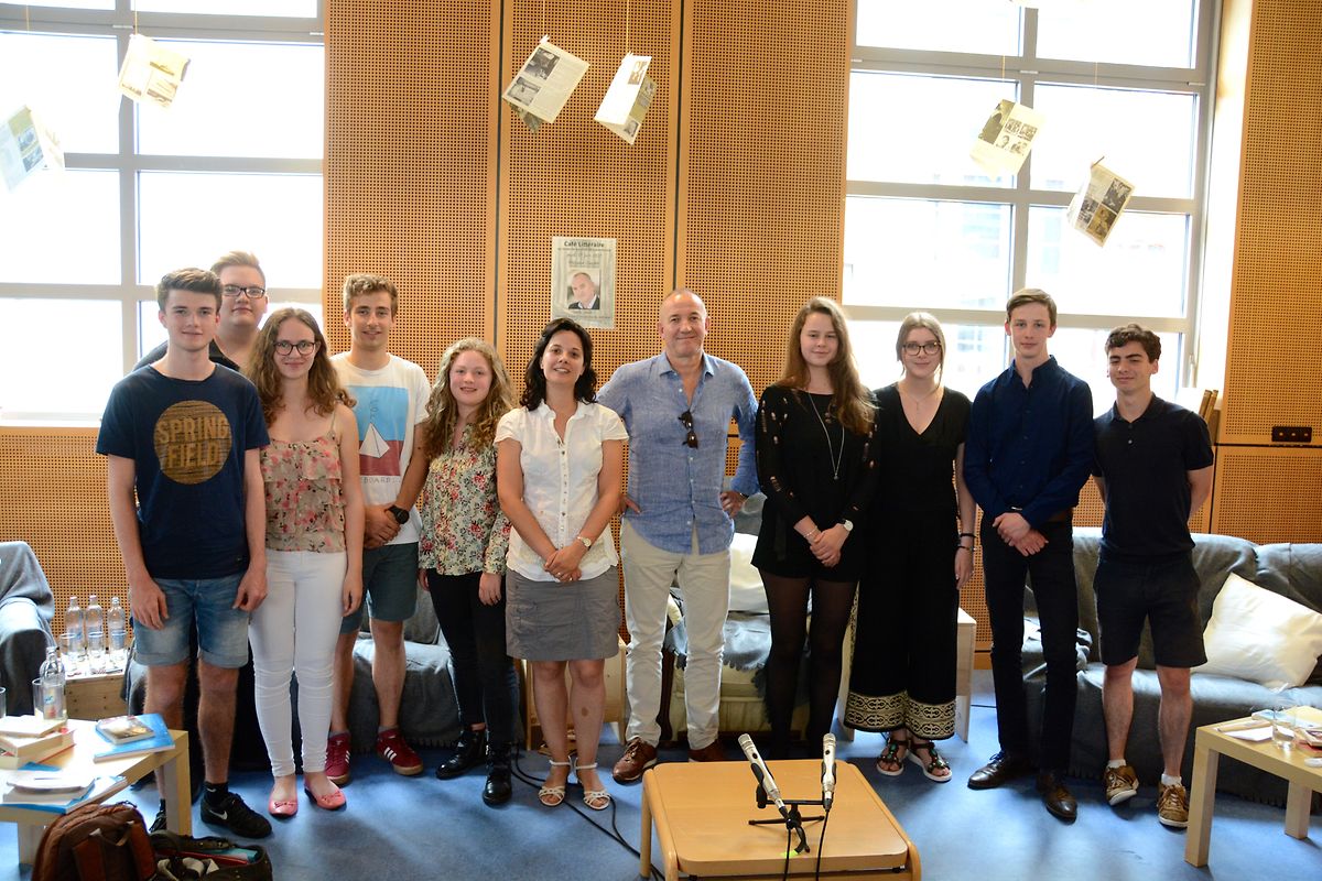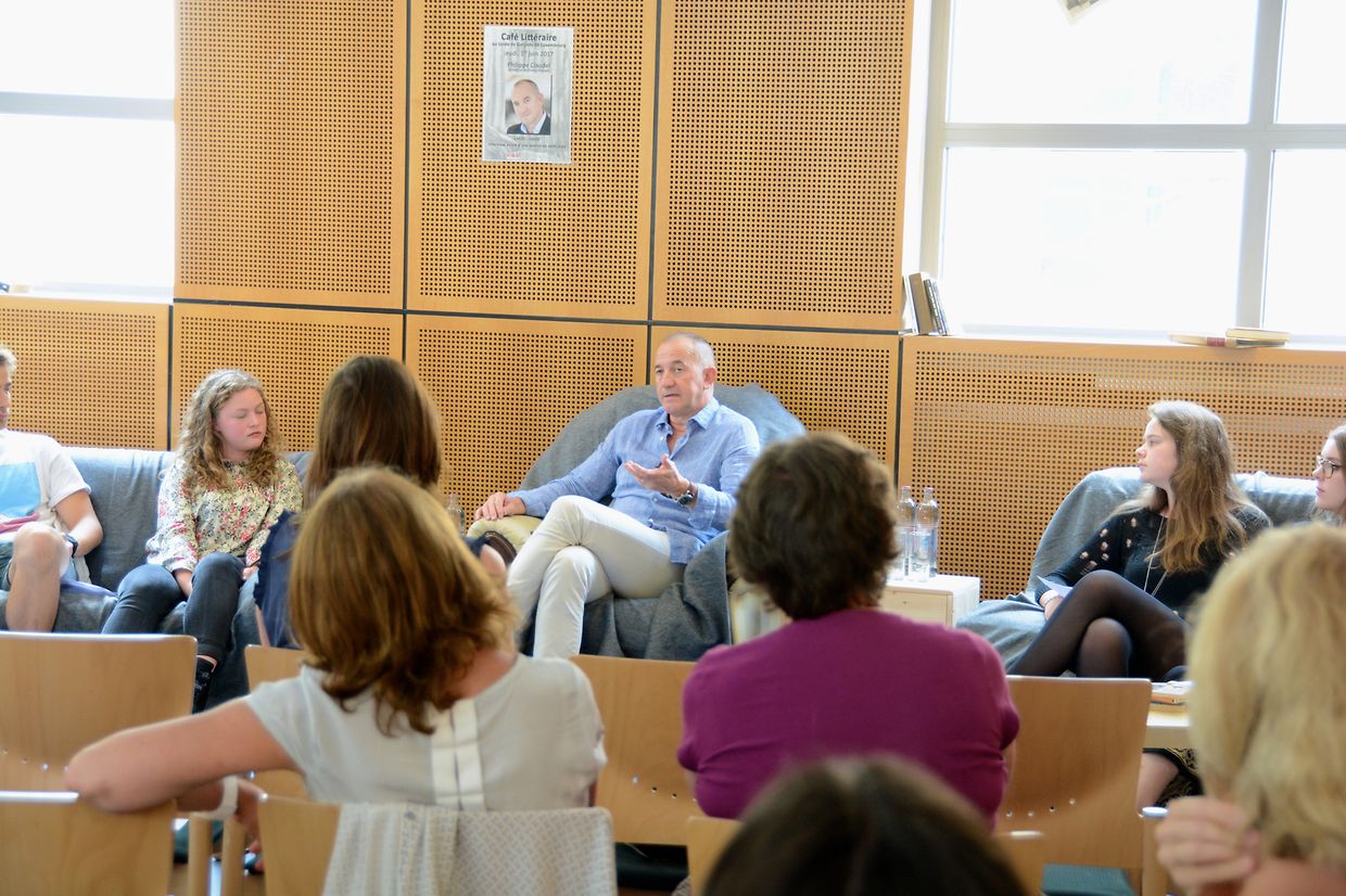 Trois groupes d'élèves des classes de 3G, 2C et 2A ont eu la possibilité d'interviewer Monsieur Philippe Claudel et ont ainsi pu découvrir l'approche de la littérature sous un autre angle. Cette interview, étant essentiellement consacrée au thème de la Seconde Guerre mondiale, a duré pendant près de deux heures et chaque groupe d'élèves a eu l'occasion de prendre la parole. Le premier groupe d'élèves s'est plus particulièrement focalisé sur la préface de « Si c'est un homme » de Primo Lévi, écrite par Monsieur Philippe Claudel. Une des questions posées par les élèves de la classe de 2C a été si de tels événements pourraient se reproduire dans notre époque actuelle. Il est cependant difficile d’avoir une réponse adéquate à ce genre de question. Par contre, c’est à travers un dialogue captivant et grâce à des moments passionnants que cette rencontre a été d'autant plus agréable.