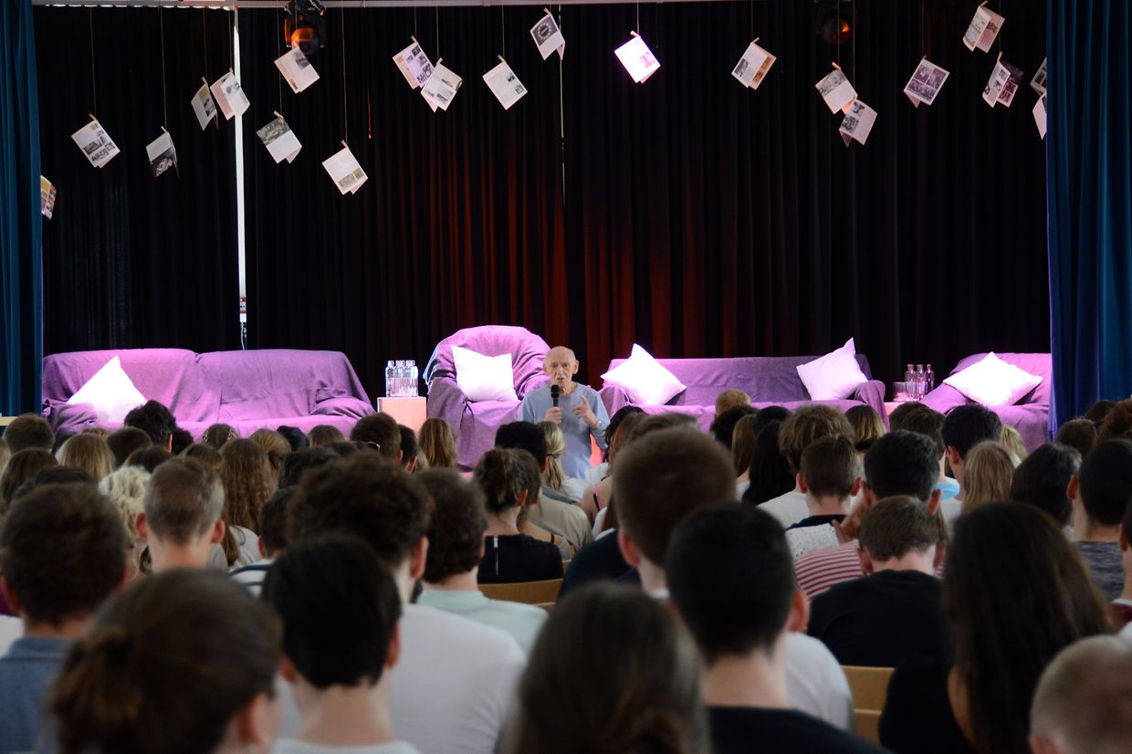 Monsieur Sobol s’est retrouvé devant toute une assemblée d’élèves du LGL, mais aussi devant d’autres classes venues d’autres écoles du Luxembourg ainsi que de nombreux visiteurs externes. Ce fut un témoignage émouvant qui a permis aux jeunes de mieux comprendre une partie de l’Histoire. Monsieur Sobol, passeur de mémoire, a réussi à capter l’attention de son public tout en le faisant réfléchir quant aux événements qui se sont déroulés aux camps d’Auschwitz. Il a ainsi partagé son vécu, ses souvenirs, mais il a tout particulièrement voulu lancer un message aux jeunes, à savoir que « l’avenir, c’est ce nous en ferons nous-mêmes ».