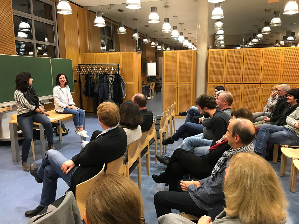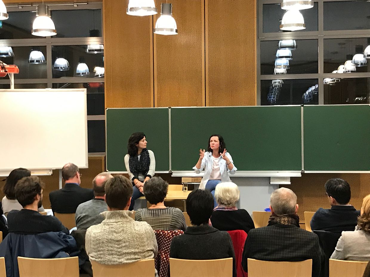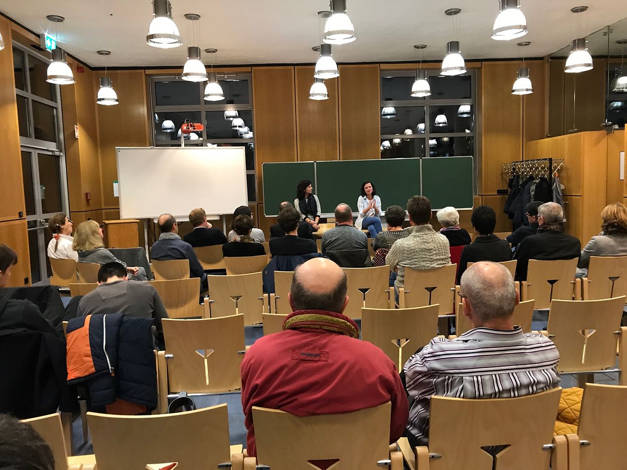 Cette conférence s’est déroulée sous la forme de questions-réponses posées par Madame Stéphanie Duchaine. Ce fut devant une assemblée de quelque trente personne que Myriam Muller a tout d’abord présenté son parcours d’artiste, en relatant ses débuts au LGL pour ensuite parler de sa passion pour le théâtre. Après voir fait ses études à Paris, elle est revenue au Luxembourg et s’est lancé un vrai défi tel que le poste de directrice du Théâtre du Centaure qui lui a été proposé et qu’elle a accepté.