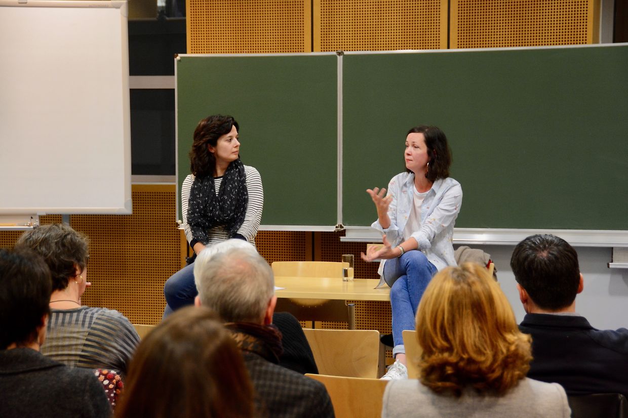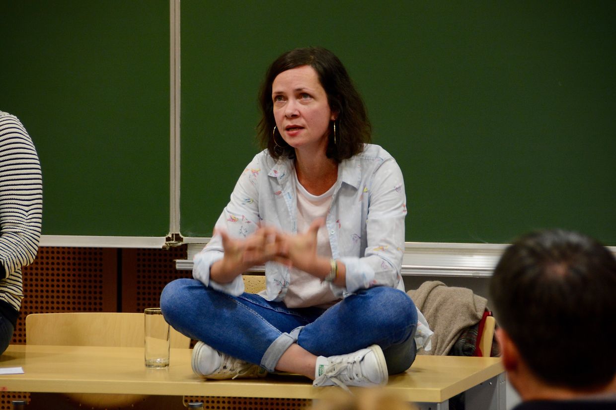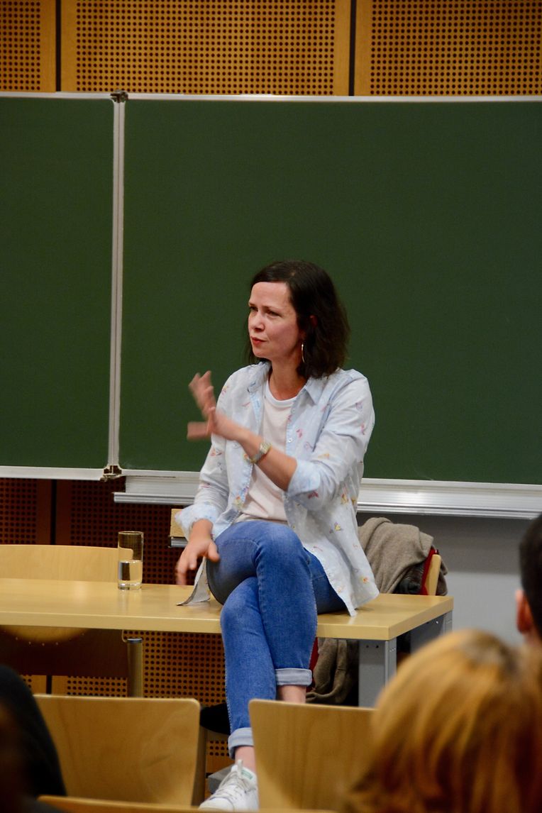 Cette conférence s’est déroulée sous la forme de questions-réponses posées par Madame Stéphanie Duchaine. Ce fut devant une assemblée de quelque trente personne que Myriam Muller a tout d’abord présenté son parcours d’artiste, en relatant ses débuts au LGL pour ensuite parler de sa passion pour le théâtre. Après voir fait ses études à Paris, elle est revenue au Luxembourg et s’est lancé un vrai défi tel que le poste de directrice du Théâtre du Centaure qui lui a été proposé et qu’elle a accepté.