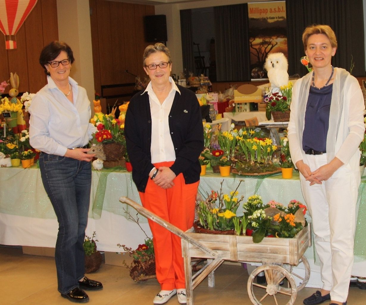 Farbenfrohe frühlingshafte Blumenarrangements, Waffeln, Marmelade und Grußkarten alles selbst hergestellt erfreute die zahlreichen Besucher. Es wurde ein Nettoerlös von 4604,94 Euro erzielt. Diese Summe wird in Gänze in neue Projekte in Sambia investiert werden.