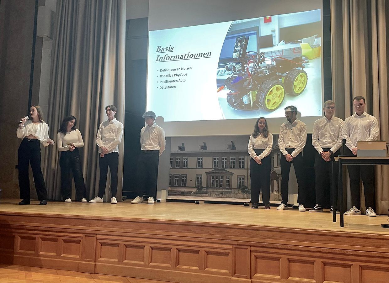 Während den “Ateliers scientifiques” hunn d’Schüler Dissectiounen gemat vun Organer an sie hunn Bioplastik a Sprangbäll hirgestallt an erfuerscht wéi eng Influence d’Änneren vu verschiddenen Facteuren op d’Eegenschaften vun dësen Kunststoffen huet. Och hunn sie sech befaasst mat der Graphentheorie an hunn Roboteren esou programméiert dass se enger schwarzer Linn nogefuer sinn.
