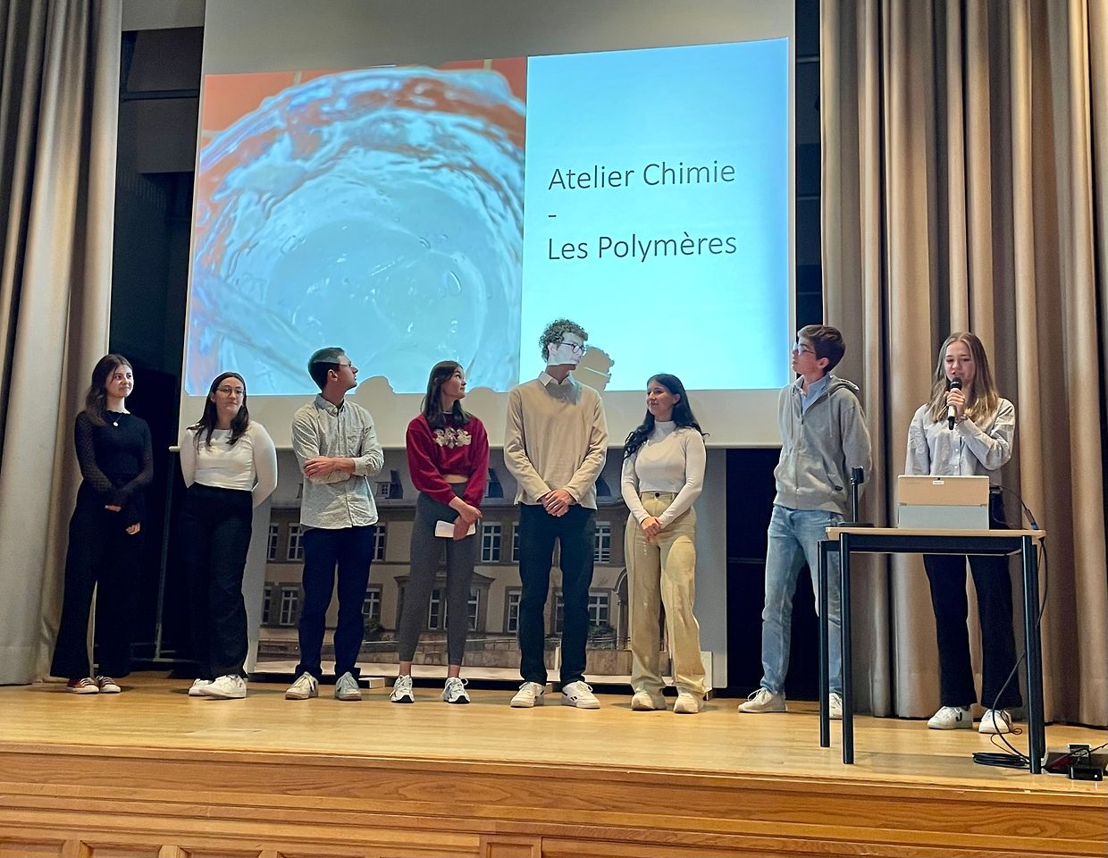 De 29. September op der Soirée scientifique hunn d’Schüler vun der 1B an 1C hir Resultater vun den “Ateliers scientifiques” vum leschte Joer virgestallt. D’Themen vun dësen Atelieren waren deelweis eng verbonnen mat deenen vum Voyage scientifique deen am Juli stattfond hat, an deen vum Fonds National de la Recherche ënnerstëtzt gouf.