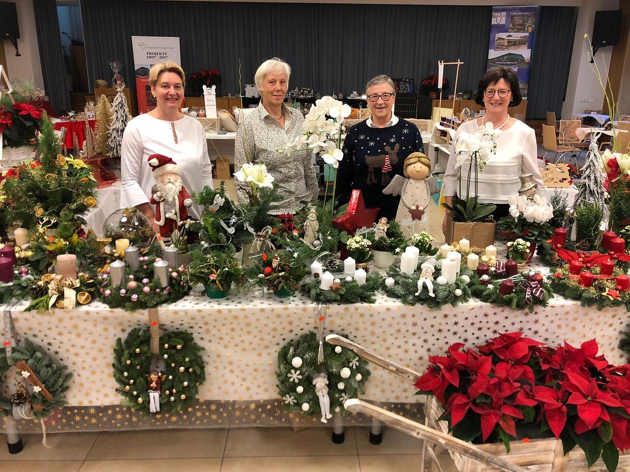 Bereits zum 24. und 25. November diesen Jahres erstrahlte der Festsaal der Fondation Pescatore in weihnachtlicher Atmosphäre. Die luxemburgische Hilfsorganisation für Kinder in Sambia "Millipap a.s.b.l." hatte rechtzeitig vor dem ersten Advent zum 12.Weihnachtsbasar eingeladen. Der Basar war ausserordentlich gut von den Bewohnern der Fondation sowie von deren Familien und Freunden, den Mitarbeitern der Fondation aber auch von vielen externen Unterstützern besucht. Neben vielen selbstgefertigten Adventskränzen und -gestecken wurden auch wieder Weihnachtsgebäck und eine grosse Auswahl an Marmelade - alles aus eigener Herstellung - zum Verkauf angeboten und fand reichlich Absatz. Begehrt waren auch wieder die neueste Weihnachtsdeko mit viel LED sowie die sogenannten Millipap Karten. Bei Kaffee und Kuchen liessen es sich die Bewohner nach getätigtem Einkauf gut gehen. Der Basar erbrachte dieses Jahr einen Nettoreinerlös in Höhe von 6941 Euro zu Gunsten der Kinder in Sambia.