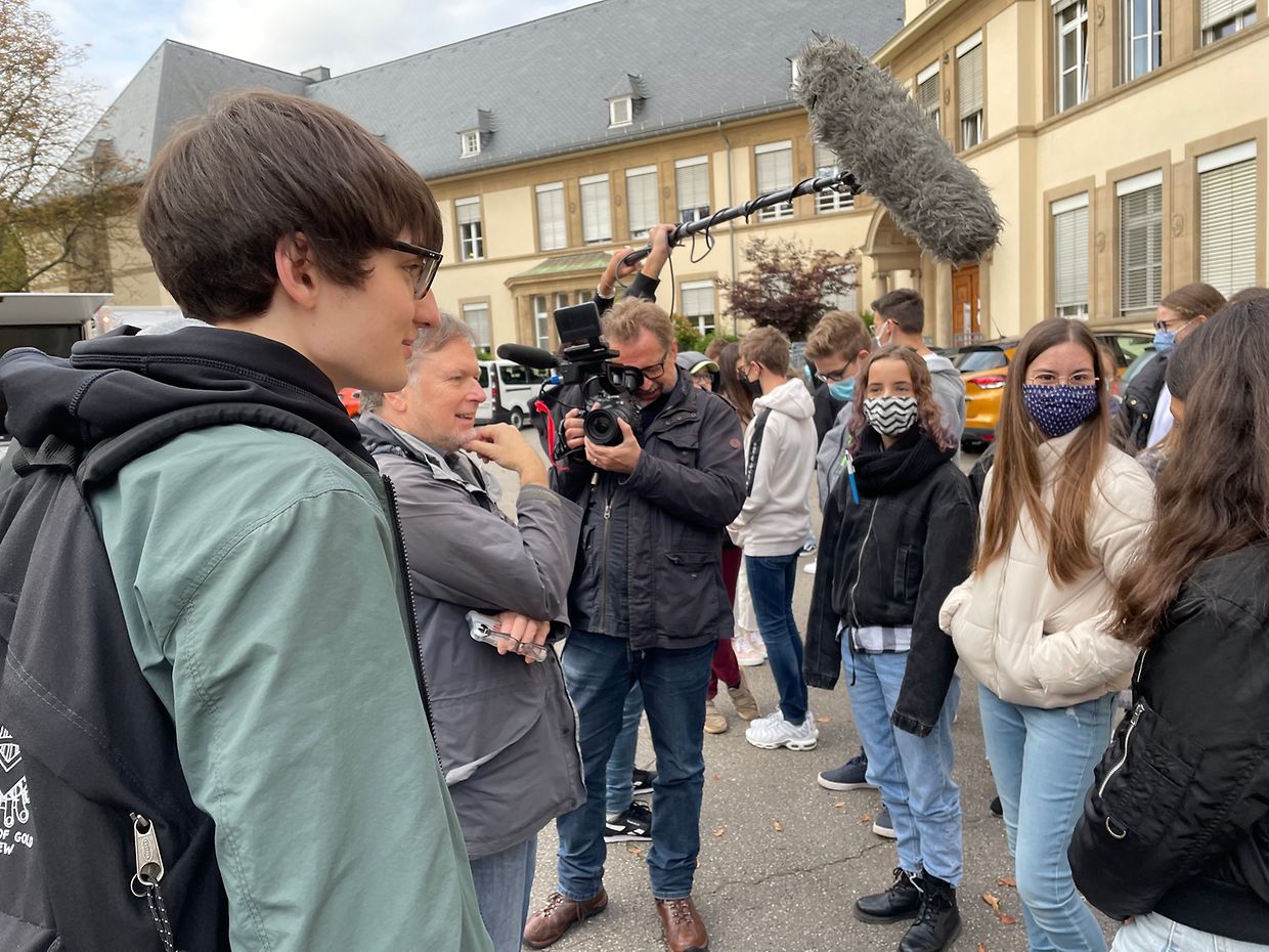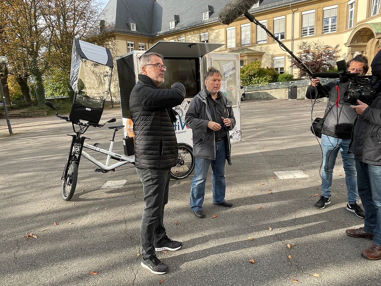 Der Schulhof des LRSL war am Dienstag, den 12. Oktober 2021 Startpunkt einer Reise von Alessandra Barale und Max Hoffmann, zwei jungen Luxemburger*innen, die sich mit einem speziell dafür ausgerüsteten Fahrrad und dem Youth4Planet-Begleitteammitgliedern Jörg Altekruse, Paul Thilges, Helen Breddy und einem Fahrer zur Klimakonferenz nach Glasgow auf den Weg gemacht haben. Gleichzeitig starteten 10 Schüler*innen des Lycée Technique d‘Ettelbruck mit ihren Lehrer*innen auf ihren Fahrrädern und einen zweiten CreatiVelo zu dieser besonderen Sensibilisierungs-Aktion für den Schutz des Klima und für mehr Nachhaltigkeit. Die Route führt über Maastricht, Eindhoven, Brüssel, Lille und Calais auf die „Insel“ und endet am 30.10.2021 in Glasgow, wo bis zum 12. November die Weltklimakonferenz COP16 stattfindet. Die CreatiVelo sind mit Bildschirmen ausgestattet, die es möglich machen, Videos von Jugendlichen zu zeigen, die an den unterschiedlichen Orten an der Strecke https://m.facebook.com/#!/youth4planet.luxembourg/ und am LRSL und anderer Luxemburger Schulen in Workshops mit Youth4planet entstehen und entstanden sind. https://luxemburg.youth4planet.com . Weitere Aktionen und Workshops rundum das CreatiVelo sind dann bis zum 12. November in Glasgow geplant. Ab dem 3. November wird das Y4P-Team durch 4 Schüler*innen aus dem LRSL verstärkt, die insbesondere die Präsentation der entstandenen Videos im größten Kino von Glasgow moderieren werden.
