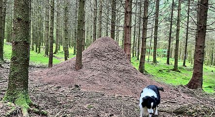 Ein grosser Ameisenhaufen im Wald.