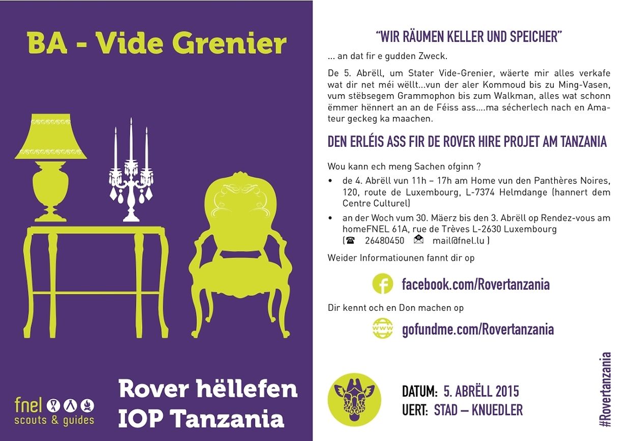Den Erléis as fier den Rover hieren Projet am Tanzania bei IOP ze finanzeieren, wou si am Summer Taafelen renoveieren gin.