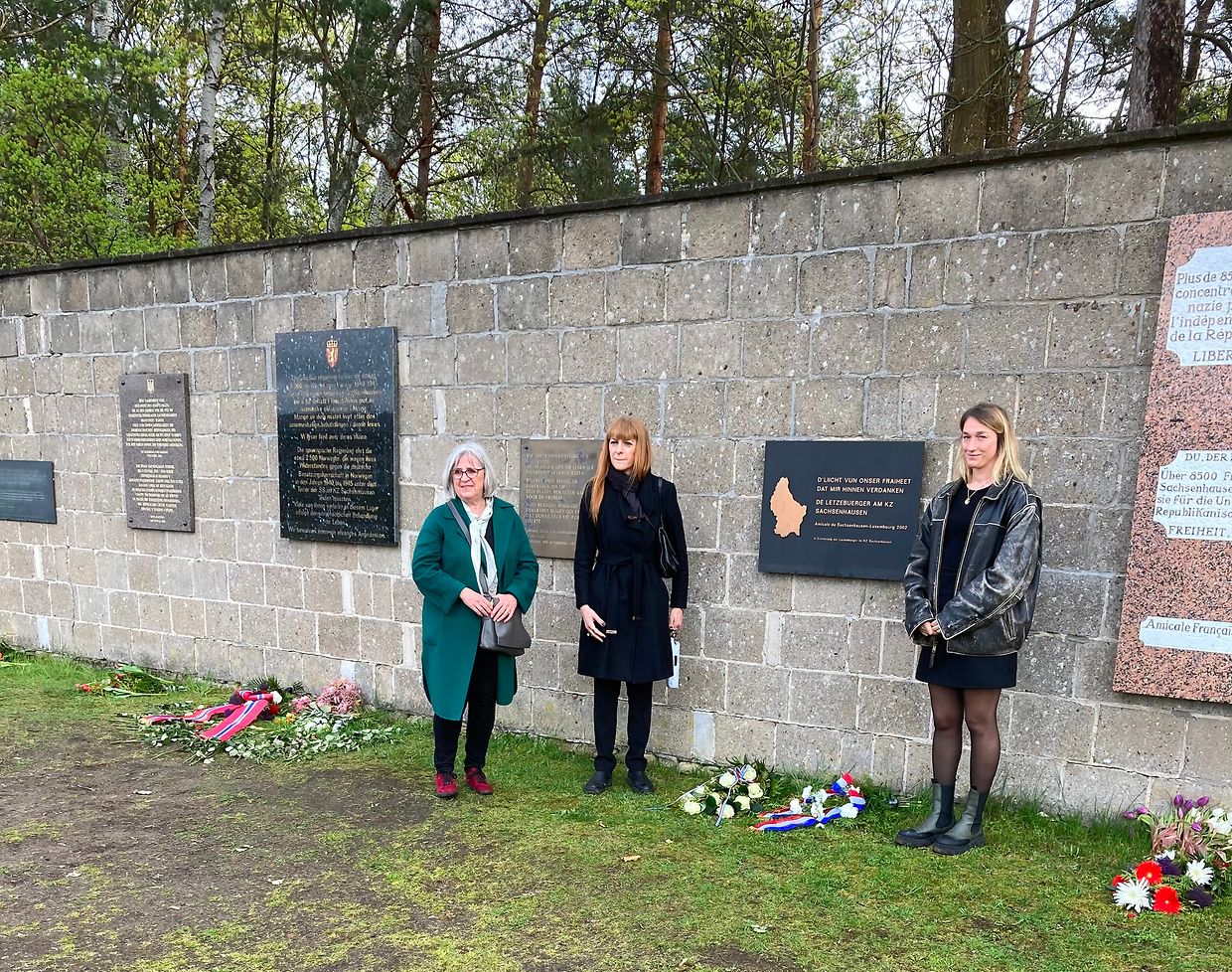 Am Sonntag 23. April, war die Luxemburger Botschaft durch Madame Natacha Gomes, stellvertretend für den Botschafter Herr Jean-Paul Senninger, an der internationalen Befreiungsfeier vertreten. Die Amicale war durch Kinder und Enkelkinder der ehemaligen Häftlinge, zusammen mit Freunden der Amicale vor Ort. Die Botschaft, die LPPD und die „Unioun vun den Lëtzebuerger Resistenzorganisatiounen“ haben zusammen mit der Amicale und der luxemburgischen Botschaft an den verschiedenen Gedenkplätzen der Amicale Blumen in der Gedenkstätte niedergelegt. Frau Natache Gomes und José Trauffler, Präsidentin der Amicale, haben ein paar bewegende Worte an die Gäste gerichtet und die Nationalhymne wurde gesungen.