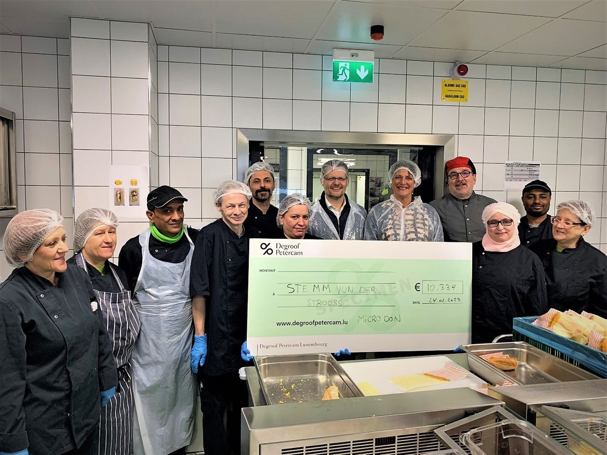 Degroof Petercam Luxembourg a souhaité apporter son soutien direct à la Stëmm vun der Strooss par un don de 10 334 euros, fruit d’une action appelée « Micro-don » de Degroof Petercam, par laquelle les employés peuvent donner une partie de leur salaire chaque mois. Ce soutien permettra d’équiper le nouveau restaurant social d'Ettelbruck au 47, rue Prince Henri.