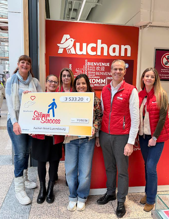 Le 11 février, un chèque d’un montant de 3.533,20 € a été officiellement remis à la Stëmm vun der Strooss lors d’une cérémonie organisée à Auchan Kirchberg.