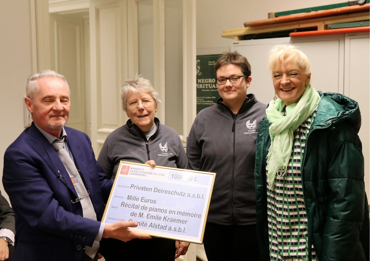 Zu Ehrenmitgliedern wurden Michèle Boultgen-Muller und Ministerin Corinne Cahen ernannt. Beide Familien haben dem Comité Alstad ansehnliche Kollektionen an Pëckvillercher geschenkt. Der „private Déiereschutz“ wurde mit einer Geldspende von 1000 Euro bedacht. Es handelt sich um den Erlös des Benefizkonzertes mit Pianistin Béatrice Rauchs zum Gedenken an das langjährige Mitglied Emile Kraemer. Unesco-Vertreter Robert Philippart lud zur Teilnahme am „Rendez-Vous des Jardins“ zwischen dem 2. und dem 4. Juni 2023 ein. Der kleine Garten beim Vereinssitz dürfte sich hervorragend für ein kleines Konzert eignen. Pierre Mousel