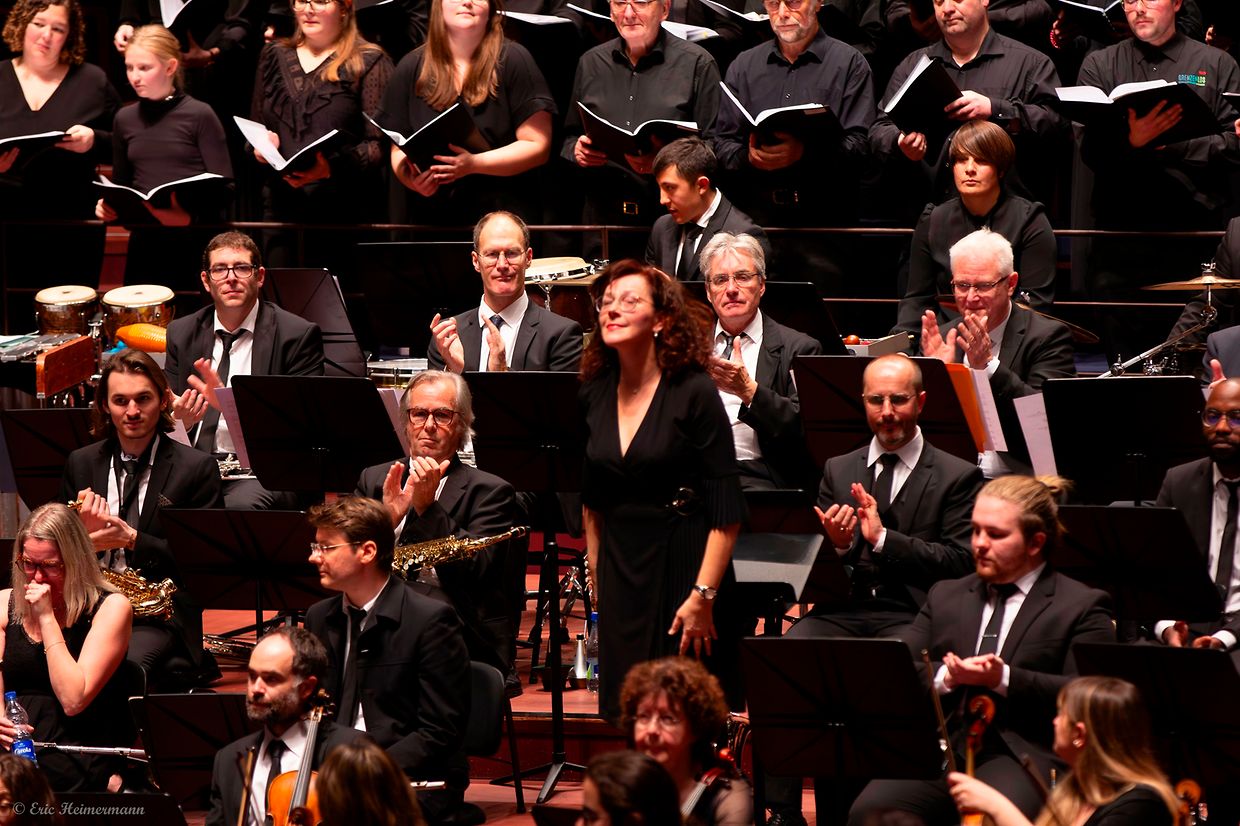 Après les concerts précédents au Théâtre de Thionville et à l'Arsenal de Metz, nous avons eu la chance de nous rendre à la Philharmonie de Luxembourg pour un autre concert. Les 700 spectateurs présents à la Philharmonie de Luxembourg ont été conquis par l'Orchestre philharmonique de Thionville et son programme américain inédit. Ils ont ressenti le besoin de se déhancher, de manifester leur enthousiasme. Cela a été rythmé, festif et d'une grande beauté. Sébastien Beck, le chef, a été impressionnant pendant près de 1h30. Il a été habité du début à la fin. Le Philharmonique a donné le coup d'envoi avec Michaël Grin en tant que président. Dimanche, la scène de la Philharmonie a accueilli près de 90 musiciens pour interpréter ce répertoire inédit. Parmi eux, 3 solistes, Laureen Stoulig-Thinnes, soprano, Cécile Dumas, mezzo-soprano et Alexander Gebhar, ténor ont offert aux spectateurs des interprétations puissantes.