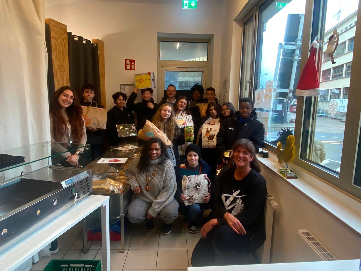 Pendant les dernières semaines, les élèves avaient préparé des paquets cadeaux accompagnés d’une carte de Noël contenant un petit mot de réconfort qu’ils ont par la suite offert aux bénéficiaires du Saxophone situé 24, rue de Hollerich.