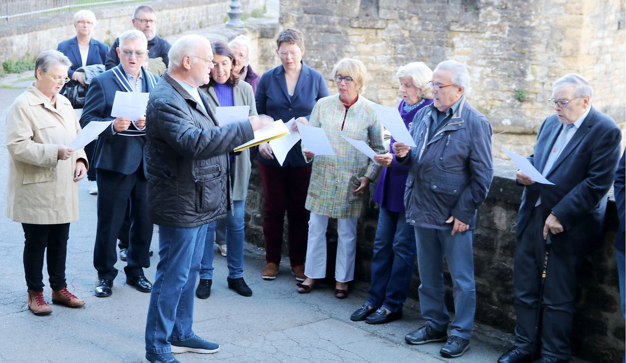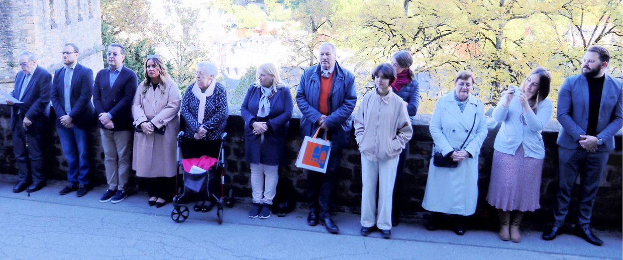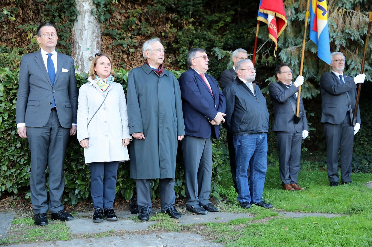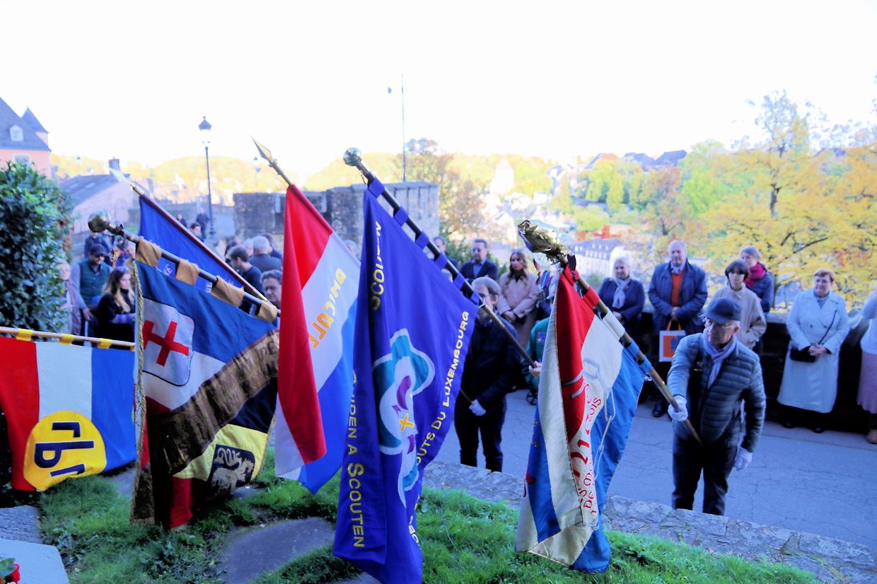 Comité-Alstad-Ehrenpräsident Jean-Mathias Goerens und Generalsekretär Claude Esch legten stellvertretend für alle Anwesenden ein Blumengebinde nieder. Der Gedenkzeremonie wohnten Ministerin Corinne Cahen und Schöffe Maurice Bauer, Familienangehörige und Abordnungen von Widerstandsbewegungen bei. Die Sonnerie aux Morts wurde von einer Abordnung der Fanfare Royale Grand-Ducale Luxembourg gespielt, die Heemecht von der Chorale St. Michel unter der Leitung von Gerry Welter intoniert.