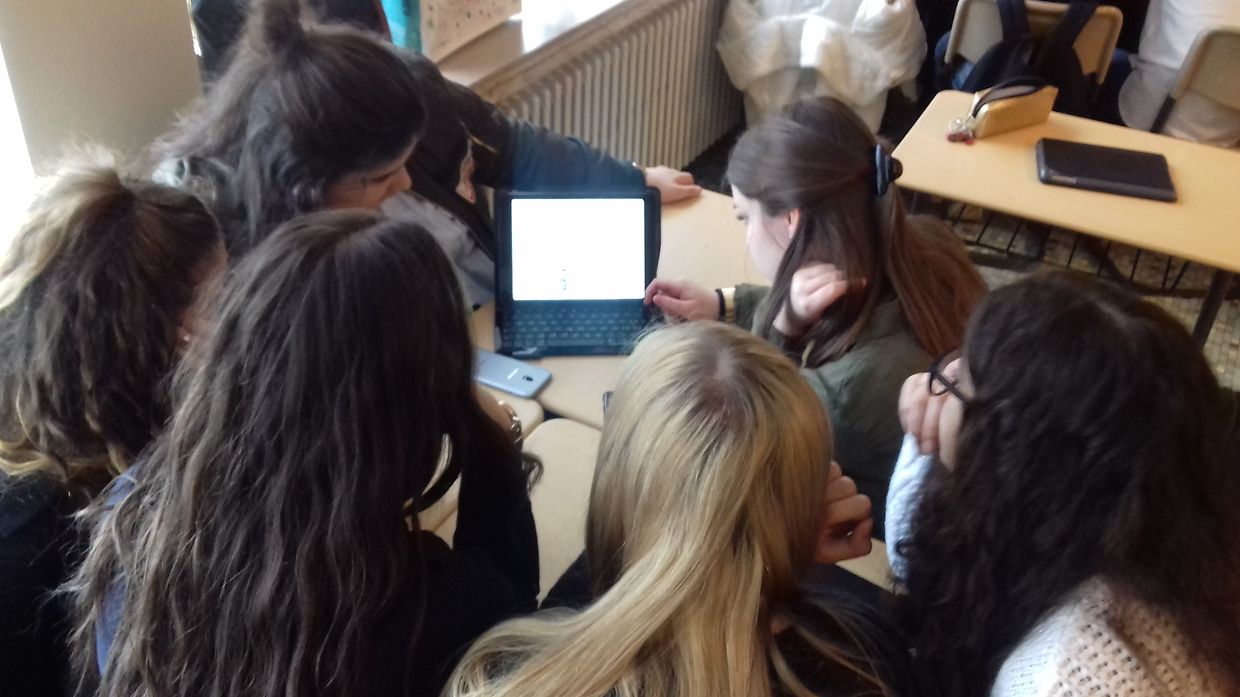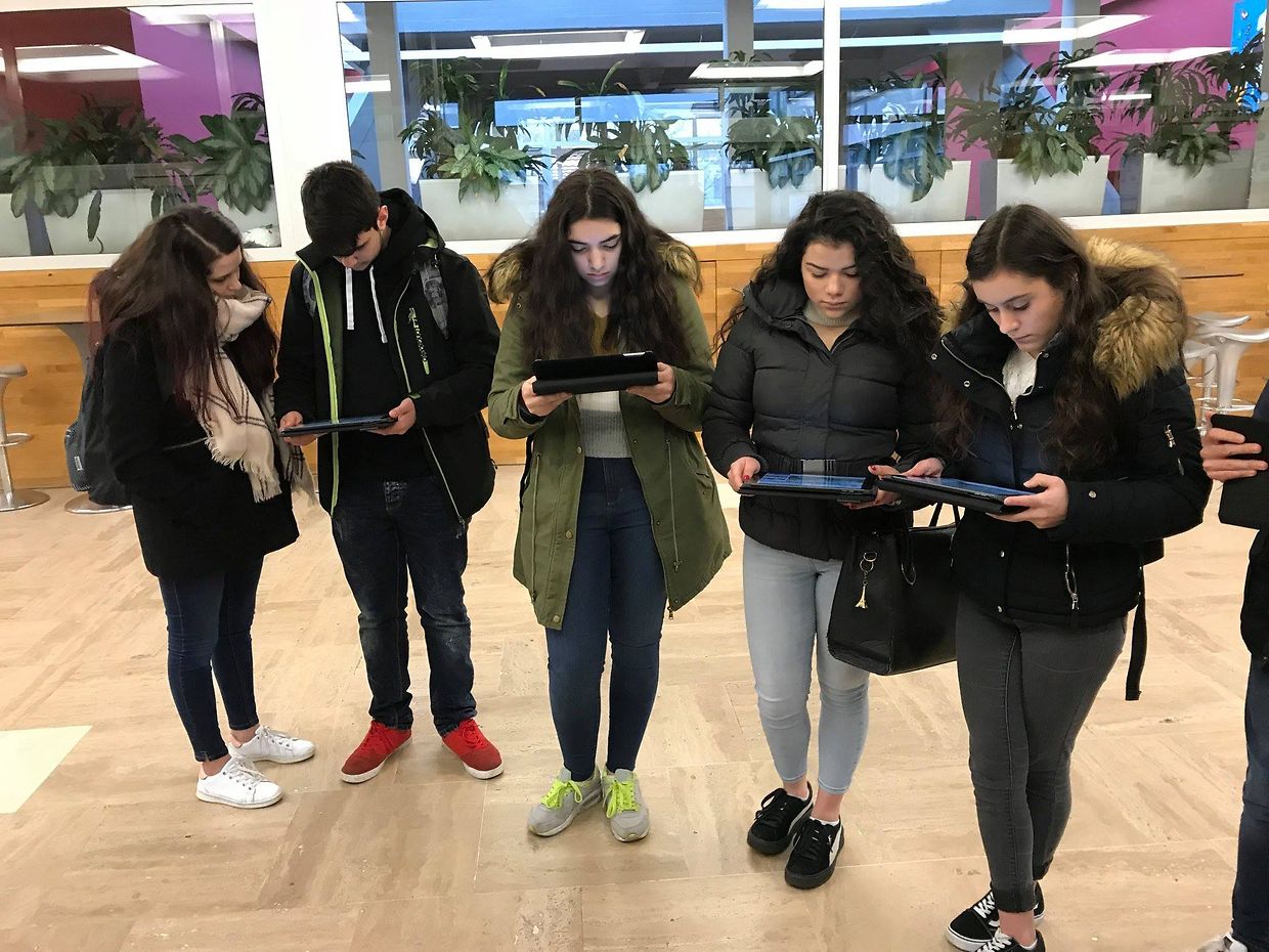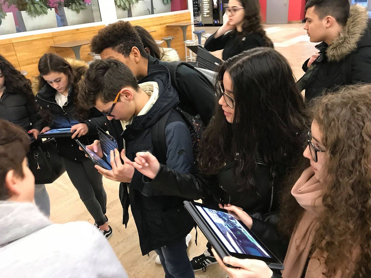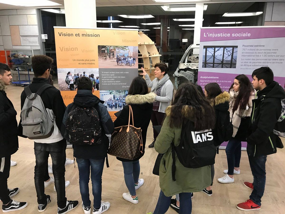 Nieft den Erklärunge ginn déi jonk Leit mam I-Pad duerch dës Ausstellung a kucken d’Filmer déi vun der ONG op hire Projetreese gedréint goufen. Heiduerch kënnen si besser verstoen a wéi engem Kontext d’Beneficiaire liewen.