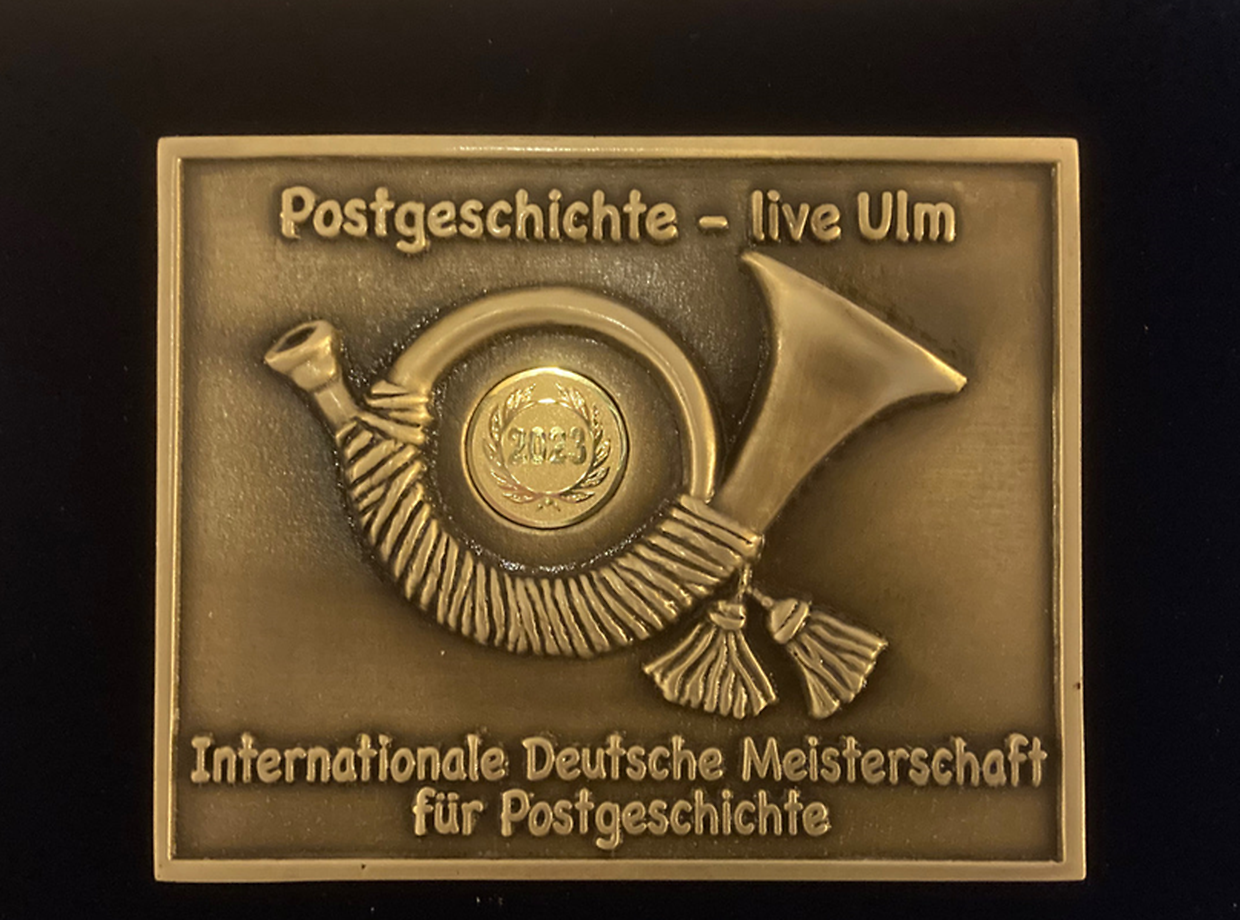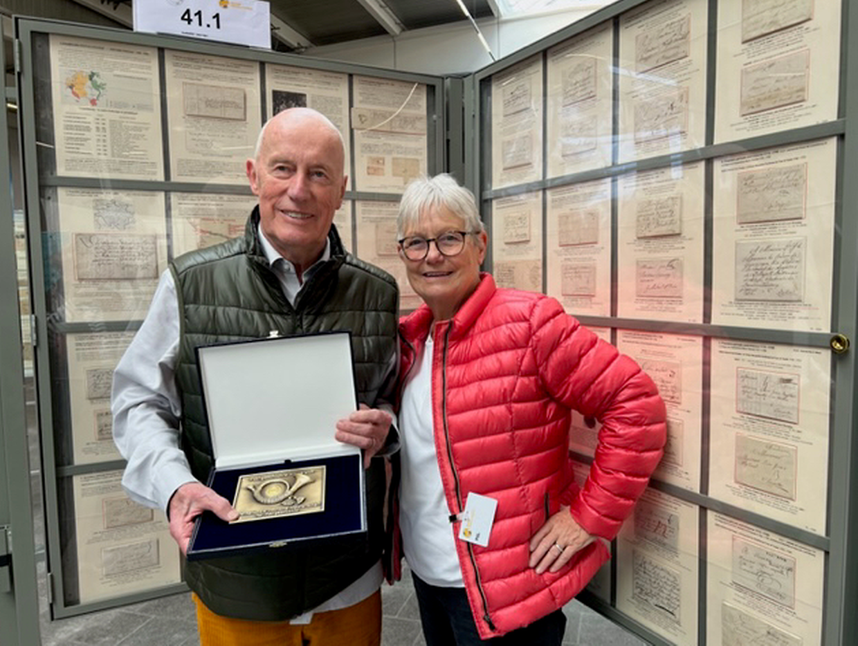 Vom 26. bis 28. Oktober 2023 fand im Rahmen der Internationalen Briefmarken-Börse in Ulm der internationale Wettbewerb „Postgeschichte-Live“ statt. Ein Höhepunkt für postgeschichtlich Interessierte ist die internationale Wettbewerbsausstellung „Postgeschichte-Live“, in der knapp 60 Exponate um die begehrten Posthörner in Gold, Silber und Bronze konkurrieren. Luxemburg war mit einem Exponat vertreten und zwar durch Herrn Jean Herr mit seinem Exponat „Luxembourg Préphilatélique - Histoire Postale 1459-1852“. Die internationale Jury ergab in der Gruppe 4.1. folgende Posthörner: Gold für Jean Herr aus Luxemburg, Silber für Thomas Matha aus Italien und Bronze für Heinrich Stepniczka aus Österreich. Die Laudatio zum goldenen Posthorn 2023 für Jean Herr war folgende: Ein kleines Land mit einer faszinierenden Geschichte, was gibt es schöneres für einen Postgeschichtler? Die sich daraus ergebende wechselvolle Postgeschichte wird in diesem Exponat logisch und in exemplarischer Weise mit einer Vielzahl von seltenen Belegen exemplifiziert und für den Betrachter einfach nachvollziehbar dargestellt. Es erstaunt, wie viele verschiedene Postmeister und Postverwaltungen sich hier in der Betrachtungsperiode von 400 Jahren abgewechselt haben. Jeder hat seine Duftmarke hinterlassen und jede der entsprechenden Perioden wird beispielhaft gezeigt. Der Aussteller versteht es bestens, all die verschiedenen Elemente zu einem einmaligen Exponat zusammenzufügen.