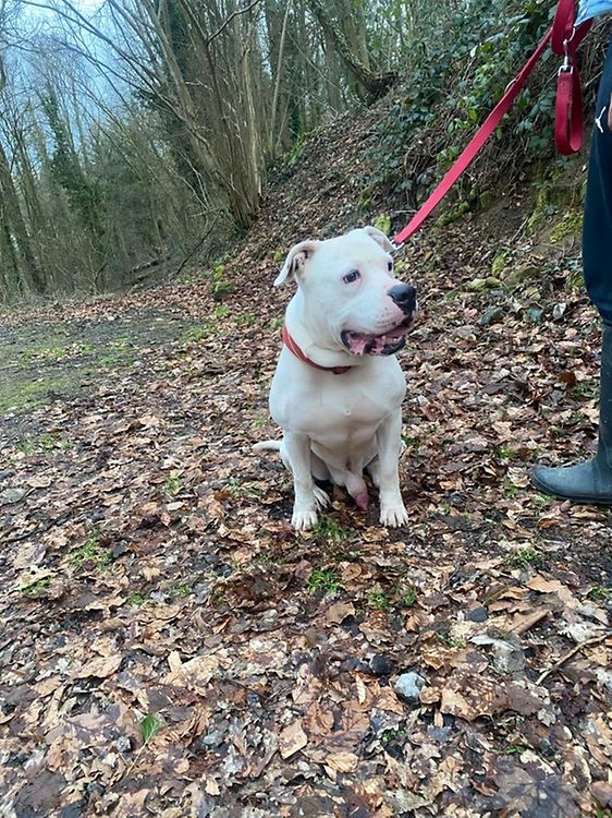 Salut, ech sinn den Jack vun 6 Joer an sinn en "American Bulldog". Ech hunn ëmmer mat engem Mupp zesummegeliewt, dee mëttlerweil verstuerwen ass. Mäi Meeschter ass geplënnert an elo siichen ech eng nei Famill ouni kleng Kanner. Ech wënsche mer Läit, déi mer Zäit an Opmierksamkeet schenken. Ech sinn kastréiert an géif mech iwer äre Besuch freeën, weider Infos bei Amiavy ënnert der N.: 621743773, bis geschwënn