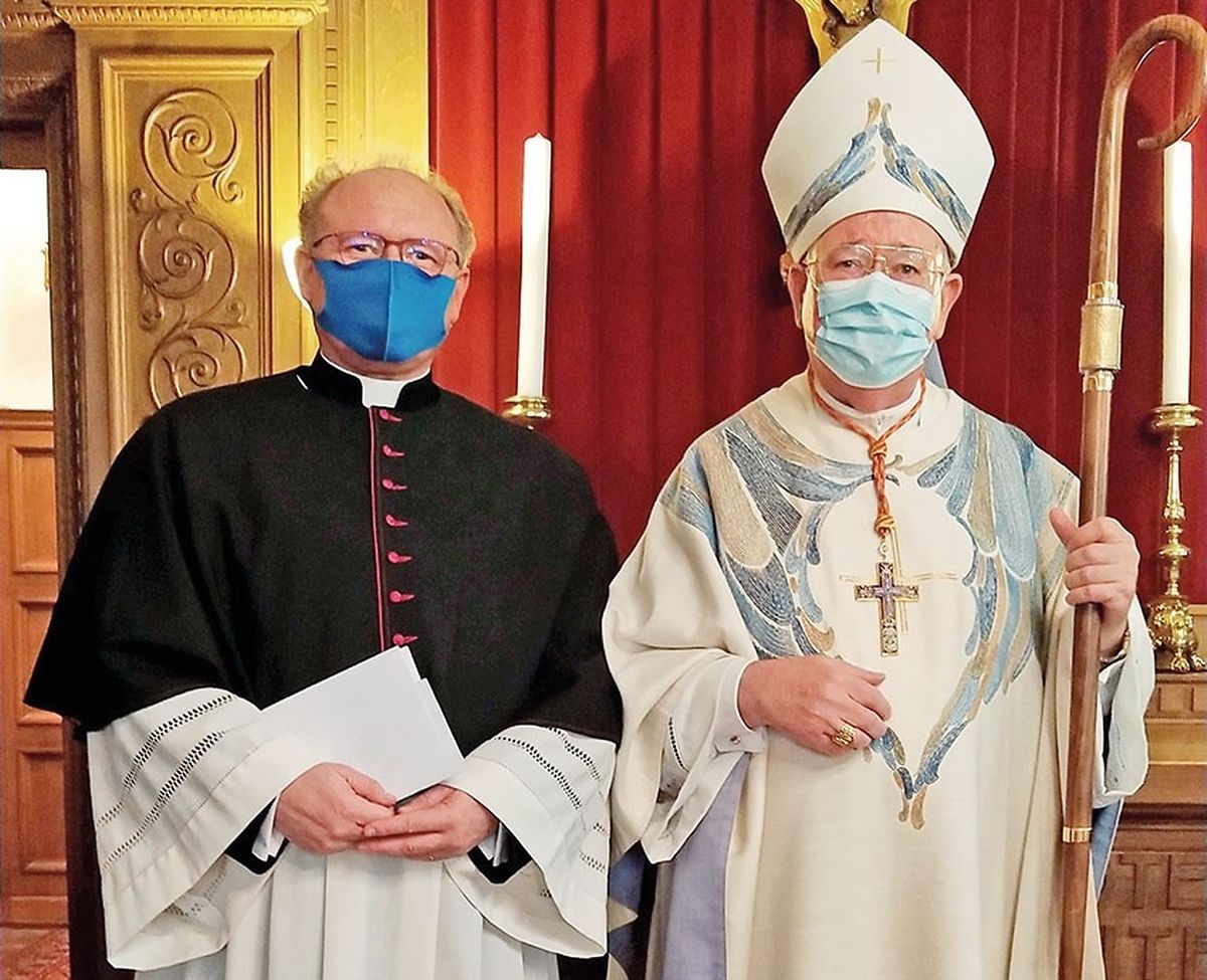 - Ehrendomherr Gregor Kauling und Kardinal Hollerich nach dem Pontifiklalamt in der Kathedrale von Luxemburg (Foto: Bistum Münster/Pater Benny, Kevelaer)