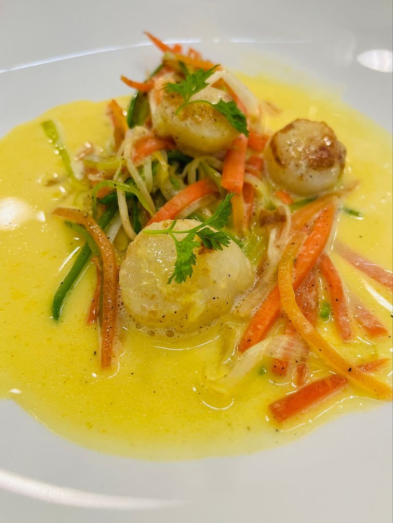 Le dîner a commencé avec des amuse-bouche tels que des Noix de Saint Jacques snackées, des légumes en Julienne et de l’Écume de safran. Au menu également, Ballotine de volaille aux champignons des bois, Risotto truffé, légumes de terre rôties et du jus émulsionné. Quant au dessert, ils ont servi de l’Eton Mess-Charlotte aux fraises-Financier à la framboise et du sorbet citron vert.