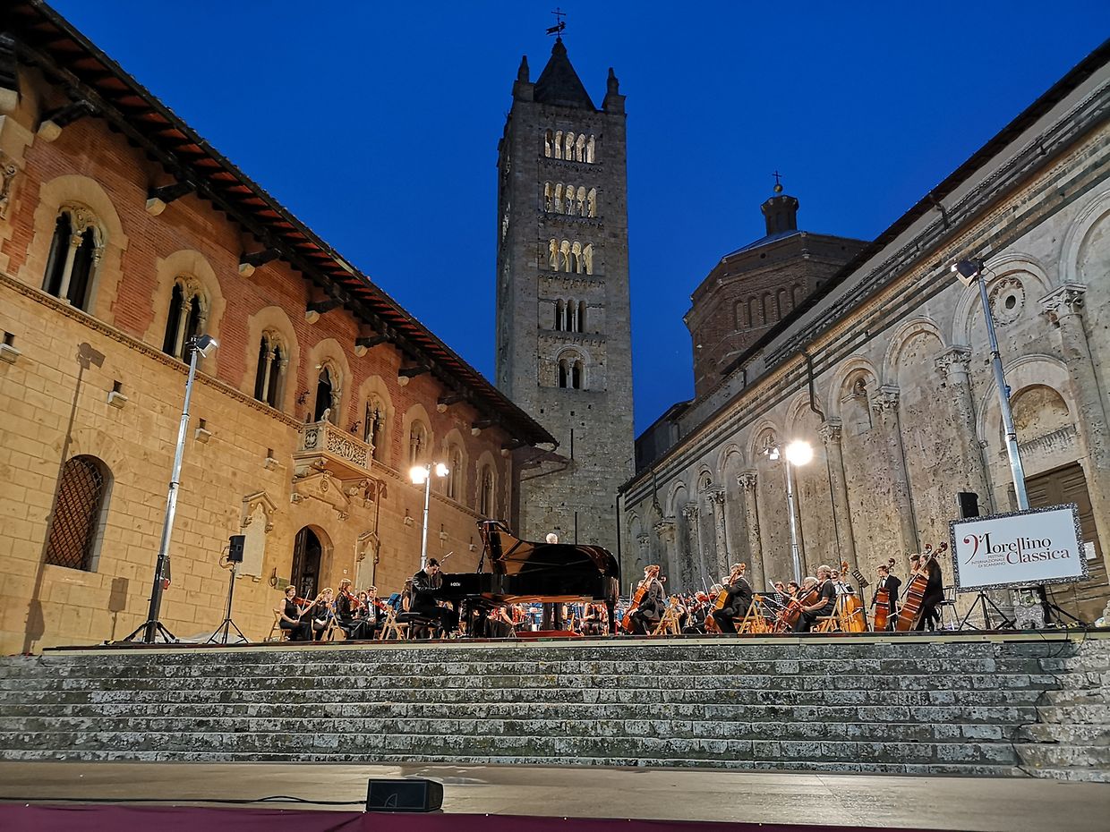 Nach der ersten Tournee vor zwei Jahren von Umbrien nach Rom befand sich unter den Zuhörern des Konzertes im legendären Auditorium des Sancta Cäcilia Konservatoriums in Rom auch der Intendant des Morellino Musica Classica Festival. Überzeugt von der Darbietung des Orchesters lud er dieses spontan auf das Festival für diesen Sommer ein. Das Festival, das vor 8 Jahren seinen Anfang nahm, hat sich mittlerweile in der ganzen Maremma, einer Region der südlichen Toskana, etabliert. So werden alljährlich von Mai bis Oktober Konzerte in den schönsten historischen Orten, Kirchen, Burgen, Klöster, Plätzen und archäologischen Parks aufgeführt. Bei der Planung der Tournee wurden wir auch auf den jungen, in der Maremma gebürtigen und dort lebenden italienischen Pianisten Pietro Bonfilio aufmerksam, ein Talent, das am Anfang einer internationalen Karriere steht und den wir für diese Tournee sowie für das Abschlusskonzert unserer Saison im hauptstädtischen Konservatorium verpflichten konnten. Auf dem Programm standen jeweils das 5. Klavierkonzert « Kaiserkonzert » von L. v. Beethoven und seine 7. Symphonie. Das Konzert in der Maremma fand vor über 600 Zuhörern auf einem der schönsten Plätze der Toskana statt, und zwar auf der Piazza del Duomo vor der beeindruckenden Kulisse der romanischen Kathedrale in Massa Marittima. Dies alles schützte allerdings nicht vor einem Unwetter, das sich mit den ersten Tropfen während der letzten Takte des Klavierkonzertes ankündigte, bevor Orchester und Publikum sich fluchtartig ins Trockene retten mussten. So fand das erste Konzert in der Geschichte des Orchesters « sotto le stelle », unter freiem Himmel, im italienischen Sommer leider ein abruptes, wahrlich nicht geplantes, nasses Ende. Vorher kam das Konzert allerdings noch zweimal im trockenen in den Abruzzen zur Aufführung, und zwar zuerst als Abschlusskonzert im Rahmen der Feierlichkeiten des 200-jährigen Jubiläums des Teatro Marrucino in Chieti. Das Theater, eines dieser typischen, wunderschönen italienischen Logentheater war fast bis auf den letzten Platz gefüllt und nach unzähligen Bravi Rufen dirigierte Chefdirigent Martin Elmquist als Zugabe noch das symphonische Intermezzo aus Cavalleria Rusticana von Pietro Mascagni, was anschliessend einen regelrechten Beifallssturm auslöste. Das zweite Konzert fand wiederum als Abschlusskonzert der alljährlichen Settimana Mozartiana im idyllisch, direkt am Meer gelegenen, moderneren Theater in Ortona statt. Auch hier wusste das Orchester das gut gefüllte Auditorium zu begeistern. Die Tournee, welche mit Unterstützung des Kulturministeriums sowie der UGDA stattfand, war somit ein voller Erfolg beim Publikum, und die Verantwortlichen vor Ort sprachen sich begeistert für eine neuerliche Zusammenarbeit mit diesem, unserem « Orchestra sinfonica da Lussemburgo » aus.