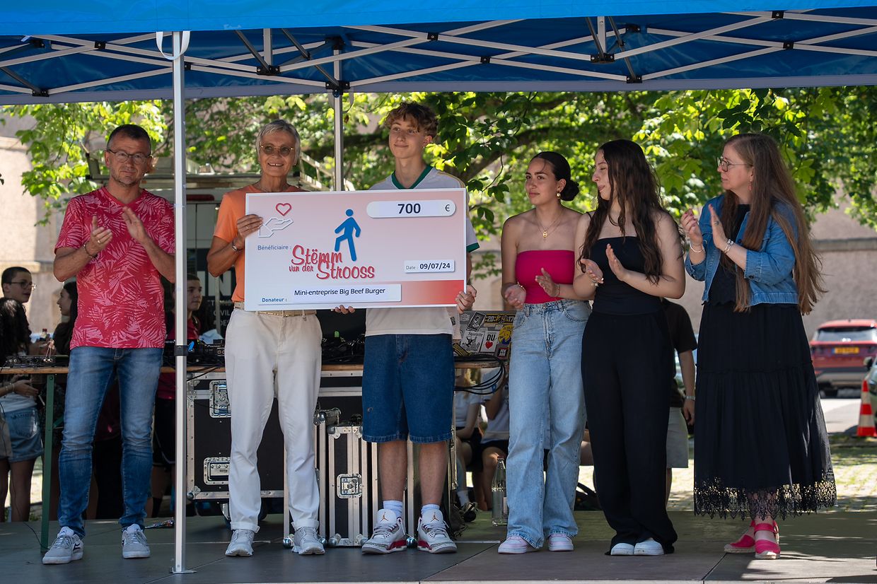 C’est dans le cadre de leur mini-entreprise BIG BEEF BURGER, que huit élèves du Lycée Classique d’Echternach ont réussi à collecter 700 € au profit de la Stëmm vun der Strooss.
