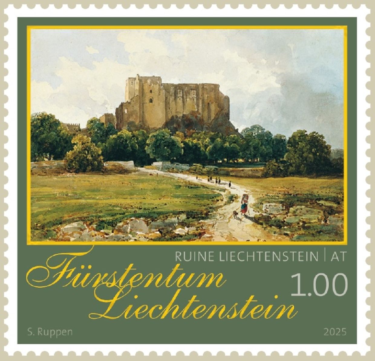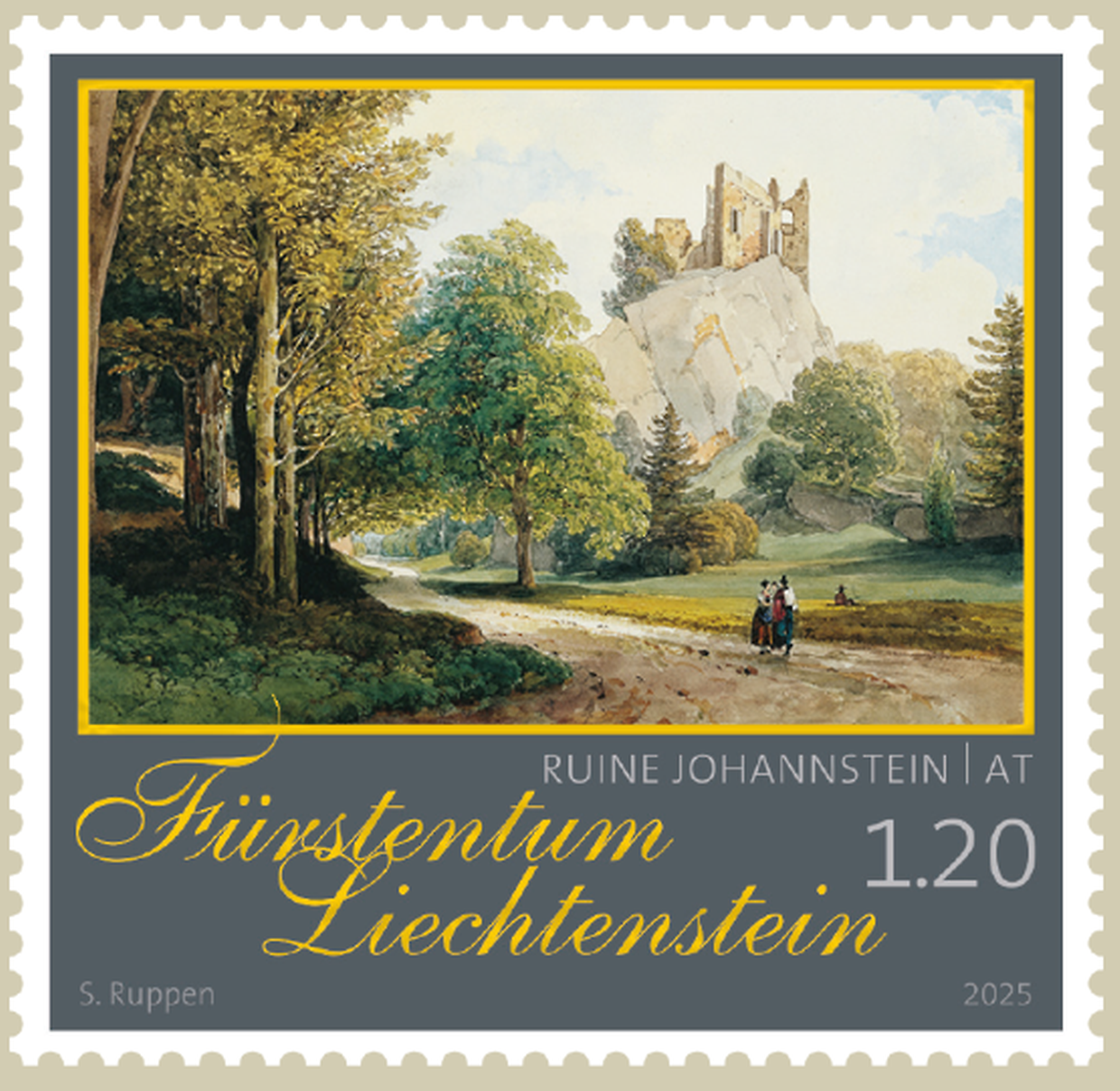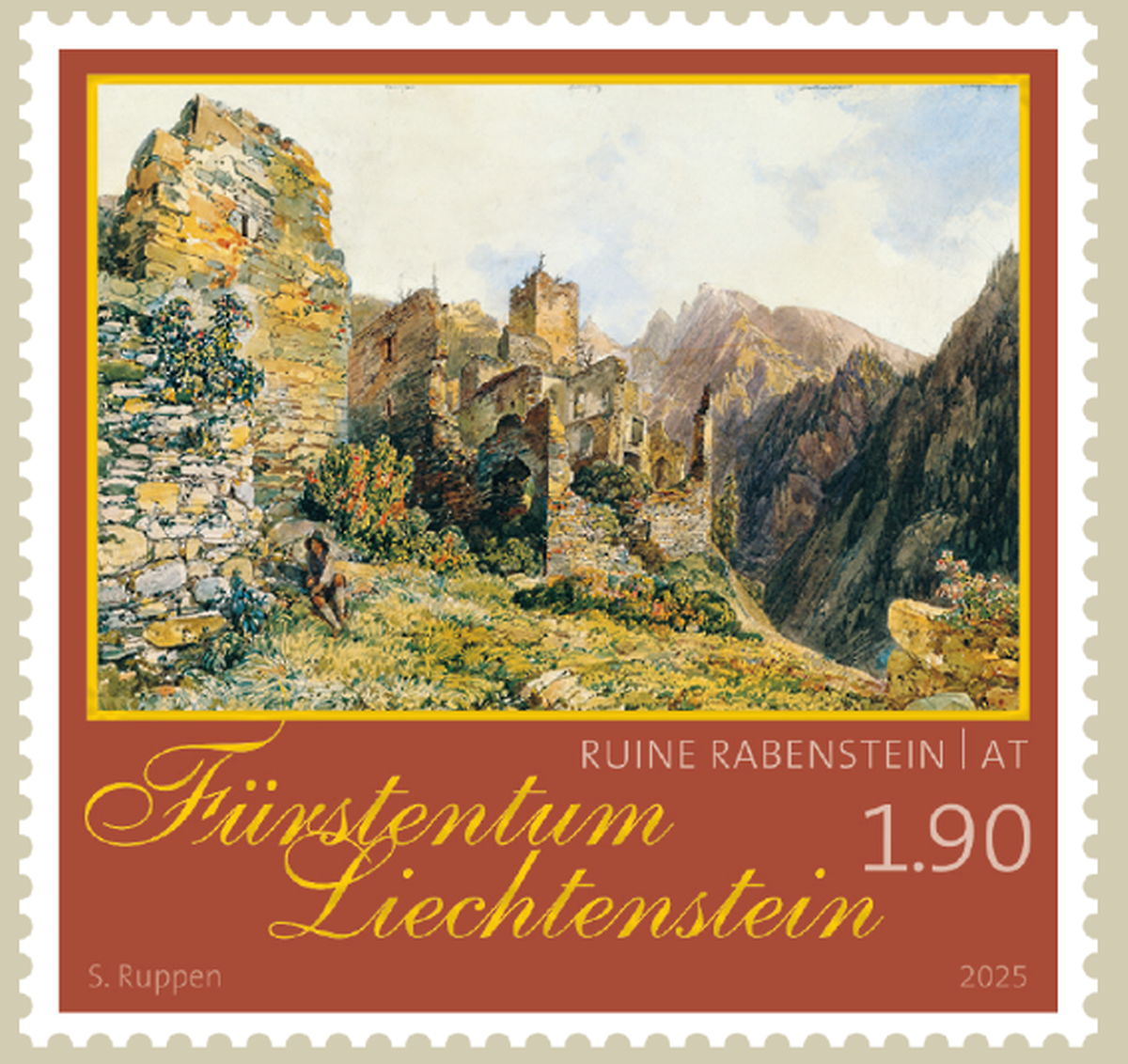 Sie zeigen Landschaften mit Ruinen von Burgen und Schlössern, die mit dem Haus Liechtenstein verbunden sind. Die Briefmarke mit dem Nennwert (CHF1.00) ist heute als Burg Liechtenstein bekannt. Das ursprüngliche Bauwerk wurde 1683 während der zweiten Wiener Türkenbelagerung zerstört. 1808 erwarb das Haus Liechtenstein die Ruine zurück und ließ sie umfassend restaurieren. Die „Ruine Johannstein“ (CHF 1.20) liegt nahe Sparbach in Niederösterreich auf etwa 450 Metern Höhe. Berühmt wurde die Burg in ihrem ruinösen Zustand. Seit 1809 befindet sie sich im Besitz der Familie und ist heute fast vollständig von Wald umgeben. Die Marke (CHF 1.90) zeigt die mit einer Höhe von 1410 Metern ehemalige Burg Rabenstein-heute bekannt als „Ruine Rabenstein“ den höchstgelegenen Burgen Tirols.