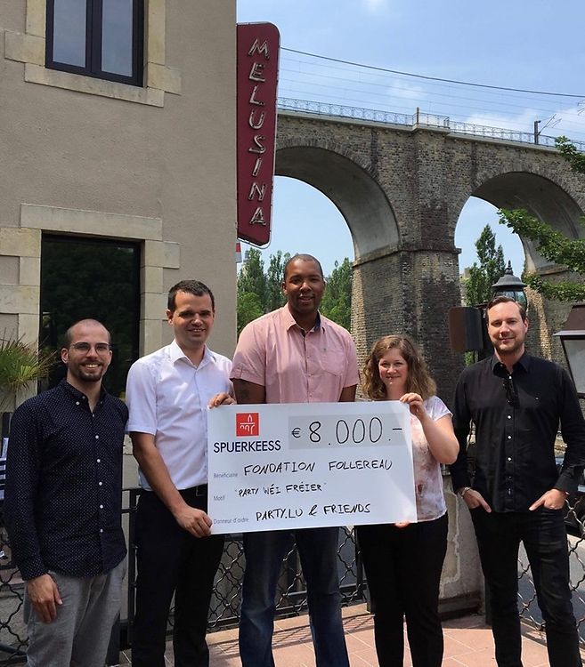 Scheckiwwerreechung vu Party.lu un d'Fondation Follereau