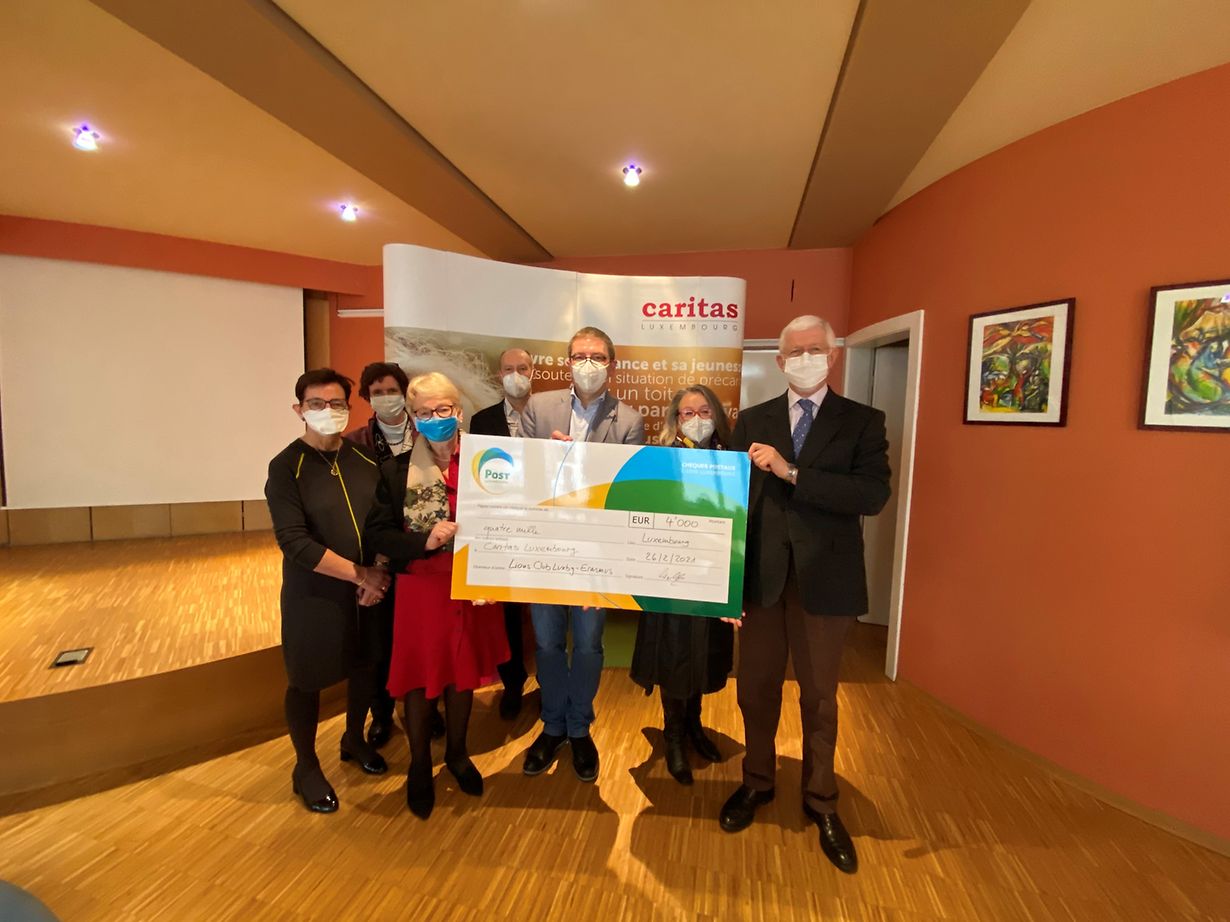 Anlässlich seines 20-jährigen Bestehens und angesichts der Unmöglichkeit, dieses Jubiläum in physischer Präsenz aufgrund der bestehenden Pandemie-bedingten Einschränkungen gebührend zu feiern, hat der Lions Club Erasmus Luxembourg beschlossen, ersatzweise zahlreiche Spenden an wohltätige Organisationen zu tätigen. Den Auftakt hierzu machte die kürzlich erfolgte Schecküberreichung an die Caritas.