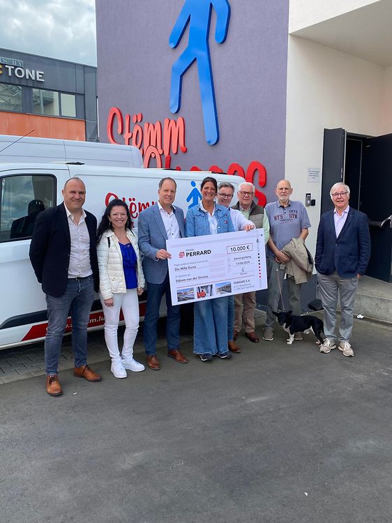 Fondée en 1900, la société Perrard est l’une des plus anciennes entreprises de construction luxembourgeoises. À ce titre, elle fut et demeure un acteur incontournable qui a façonné le cadre de vie quotidien des habitants du Grand-Duché, et au-delà. Dans le cadre de sa politique de responsabilité sociale des entreprises, elle vient de remettre un chèque de 10 000 € à l’association Stëmm vun der Strooss qui, depuis 1996, vient en aide aux personnes en détresse et œuvre en faveur de l’intégration sociale et professionnelle des personnes défavorisées.