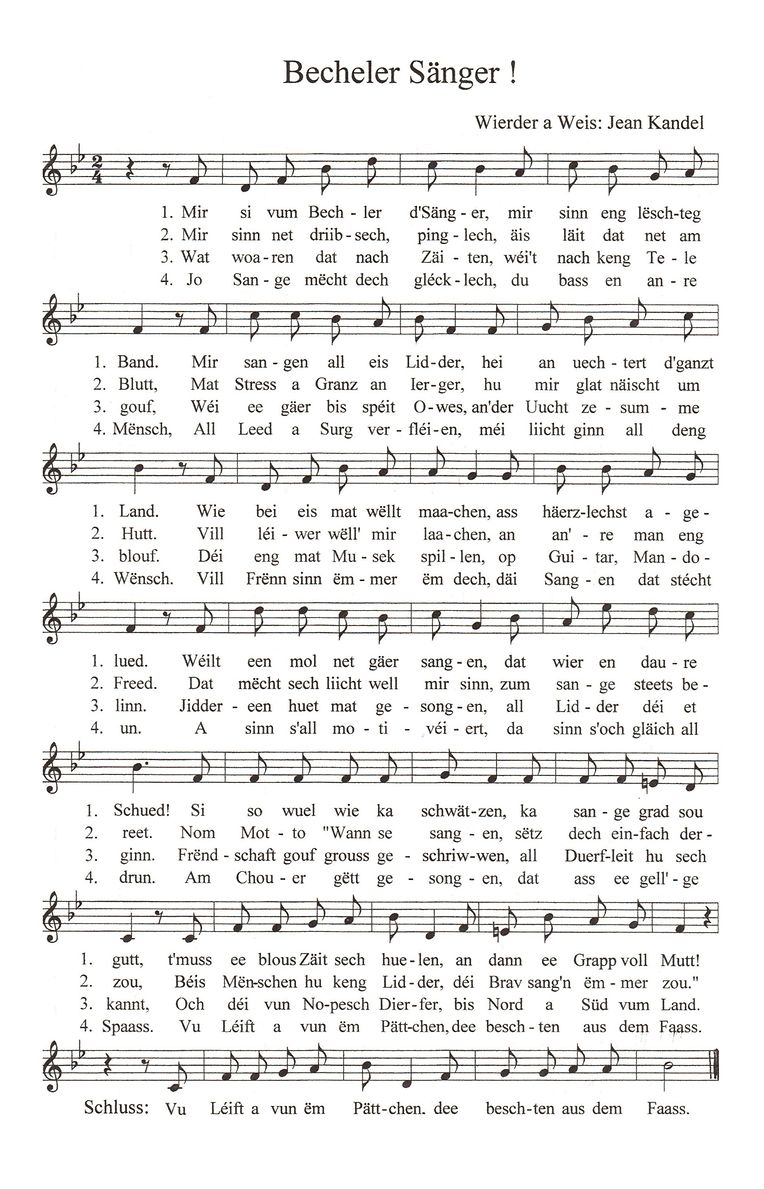 Den 22 Oktober 2008 huet alles ugefaangen. Wéi ech am Juni am Clubhaus „Am Becheler“ op engem Ausstellungs-Vernissage mat der Madame Frising geschwat hun, a gefrot ob hei och eppes Musikalesches gebuede géif, huet si dat bedauert an esou ass dat monatlecht Sängerstrffen geplangt a verwierklecht ginn. Mat ufangs 24 Sängerinnen an 1 Sänger an ee Repertoire vun ëm déi 20 Lidder ass dat ganz gutt ukomm an esou huet dat ee gudden Ulaf geholl.