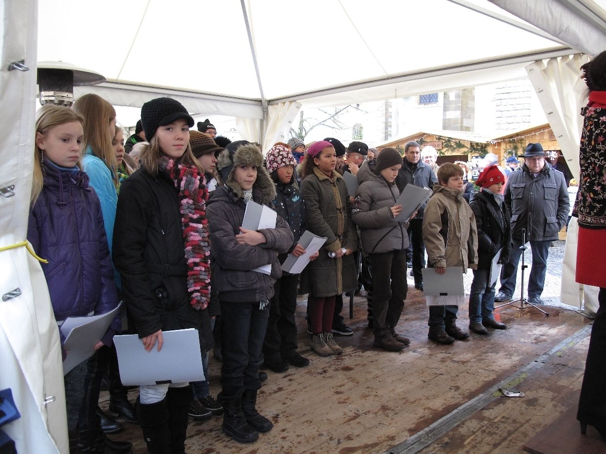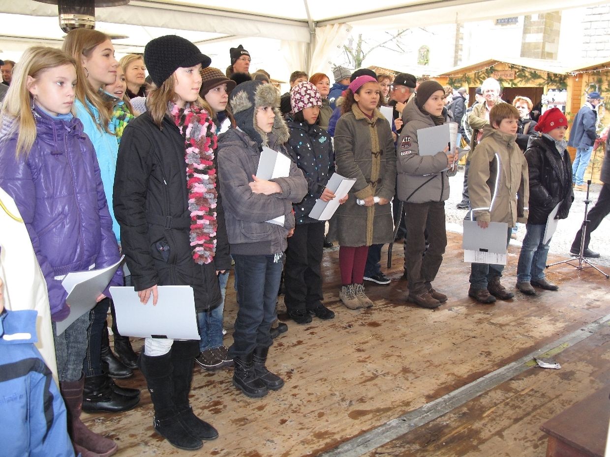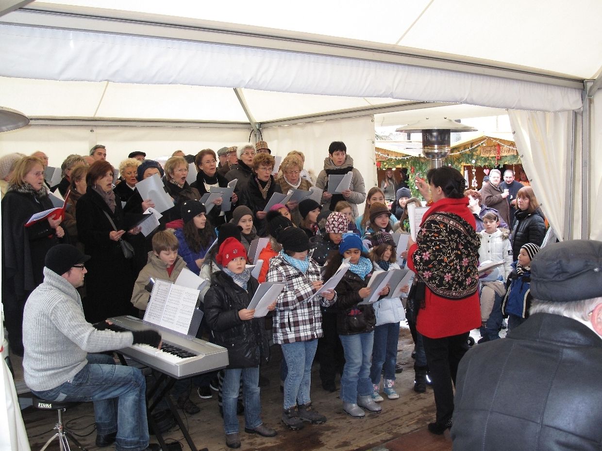 Musikalisch passend wurde der Besuch beim Weihnachtsmarkt mit weihnachtlichen Liedern vom Frauen- und Kinderchor untermalt.