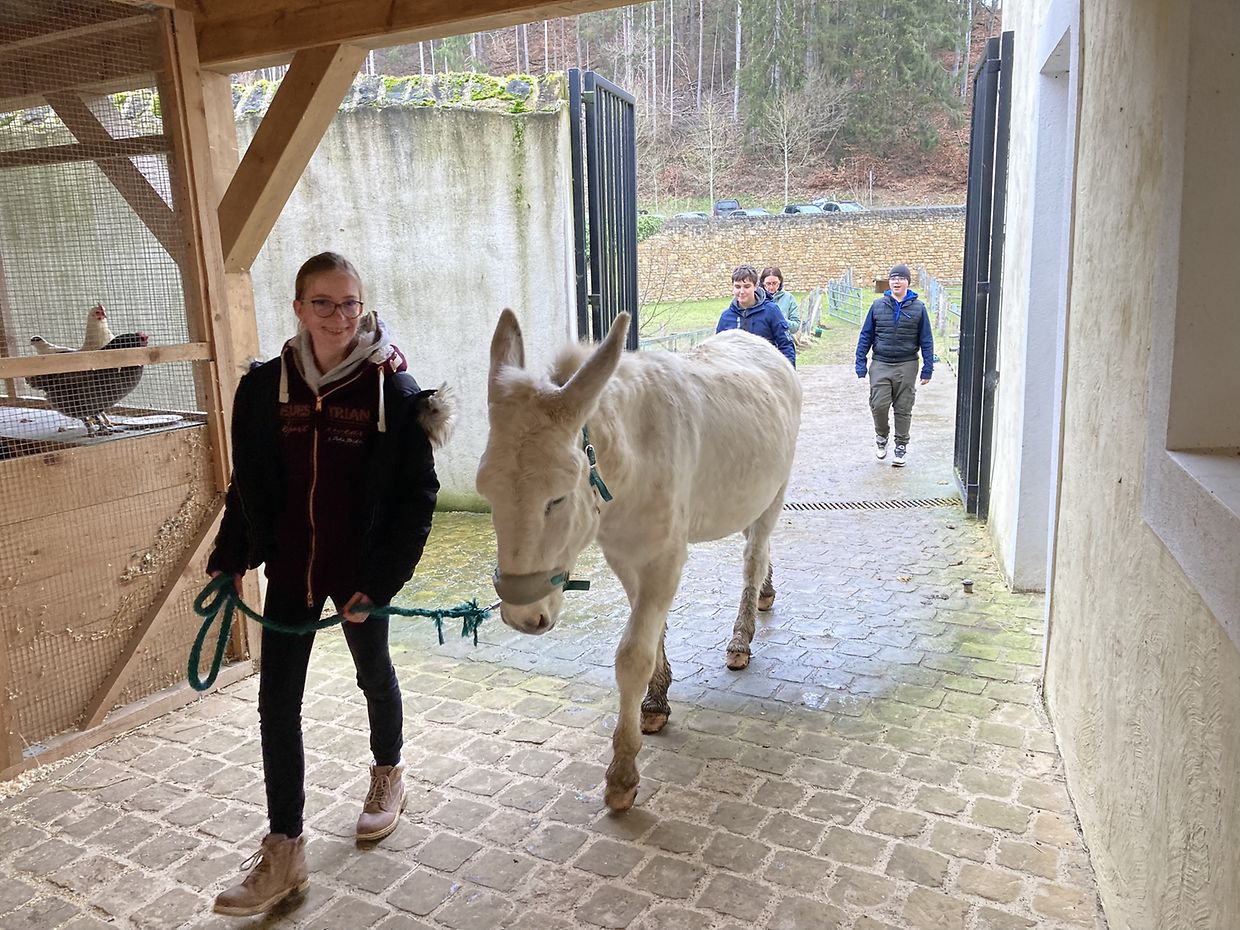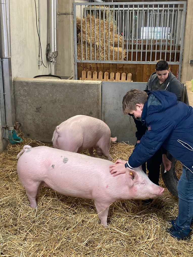 Zousätzlech haten d’Schüler och nach en Atelier zur Notzdéierenhaltung, wou si geléiert hunn, wéi d’Ernierung mat der Verdauung a mam Gebëss vum Déier zesummenhänkt. Och déi aner Déiere vum Bauerenhaff goufe mat vill Freed geheemelt, fotograféiert a versuergt.