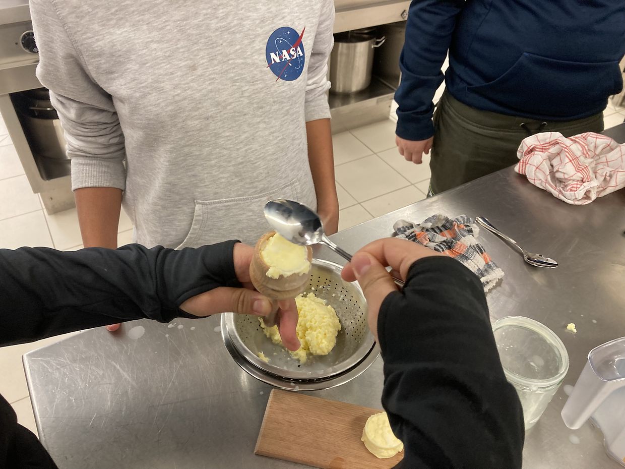 Si ware fir d’éischt de Bauerenhaff selwer kucken a konnten dono an der Kiche mat de frësche Produite Bréidercher, Botter, Kéis a Müsli maachen an natierlech och schmaachen.
